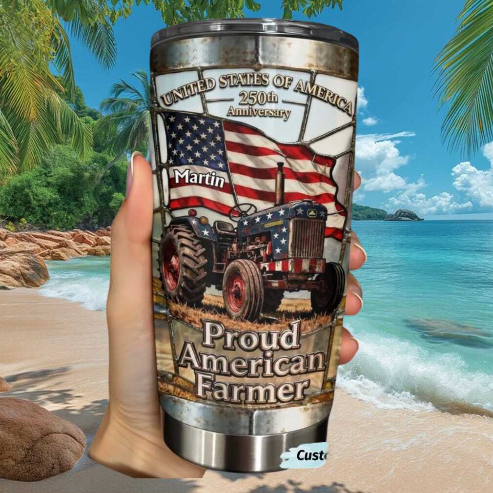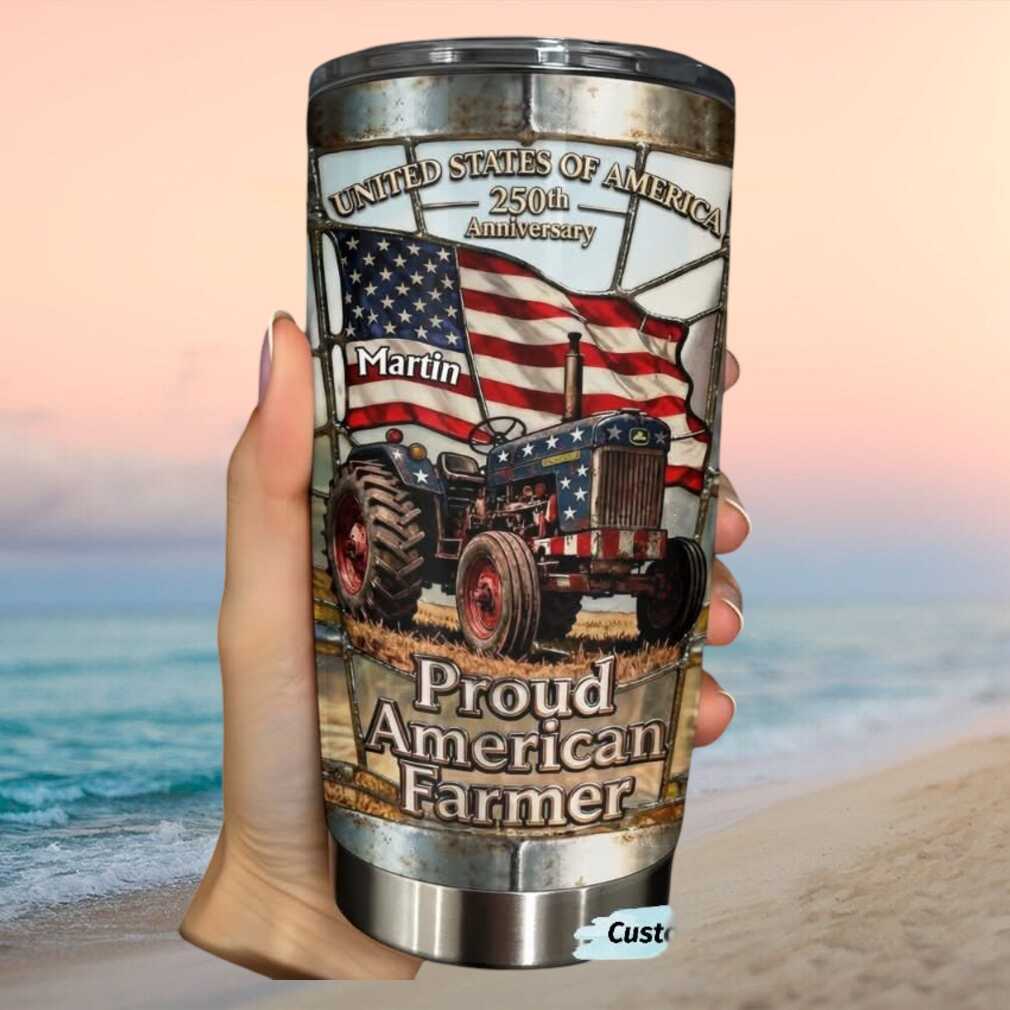 🥤 About Custom Name Proud American Farmer 250th Anniversary Tumbler Patriotic Tractor USA Flag Gift