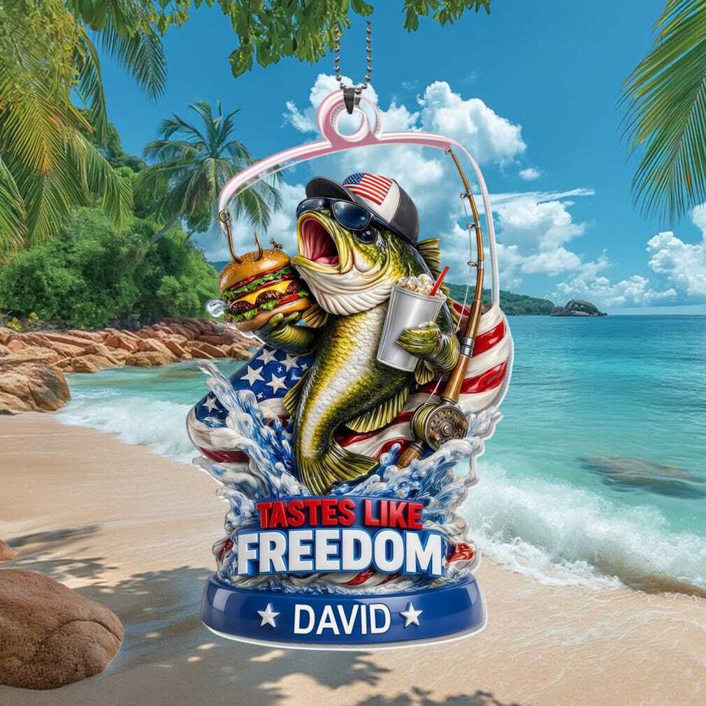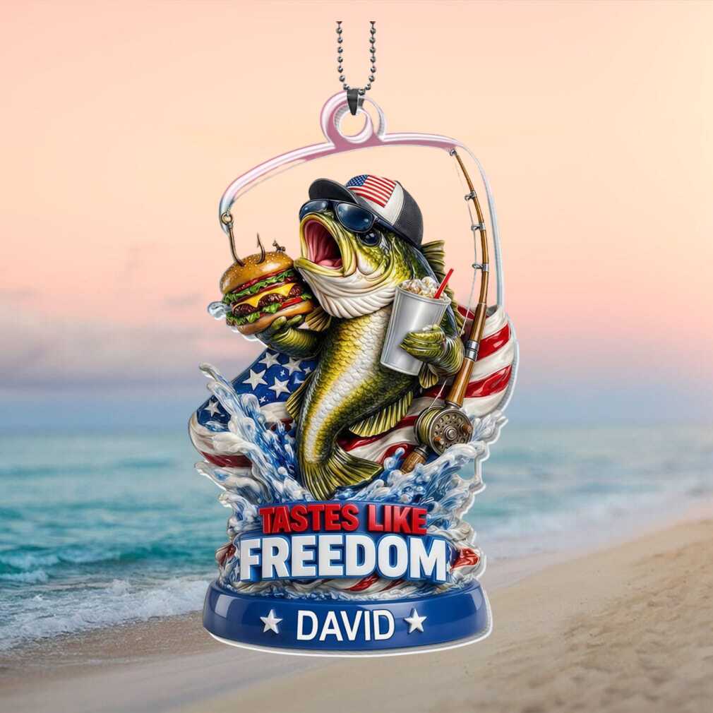 🥤 About Custom Name Tastes Like Freedom Bass Fishing American Flag Ornament