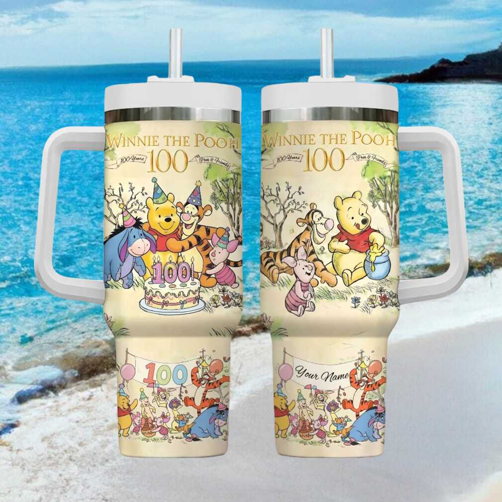 (Custom Name Winnie The Pooh & Friends 100 Years Anniversary 40oz Tumbler with Straw)Custom Name Winnie The Pooh & Friends 100 Years Anniversary 40oz Tumbler with Straw, Treat yourself or make a great gift for your loved ones