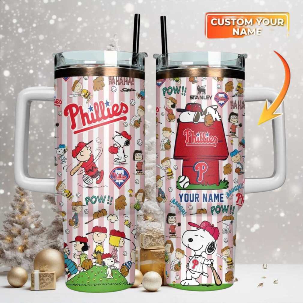 Custom Stanley Style Tumbler Peanuts & Philadelphia Phillies Baseball Fan Gear