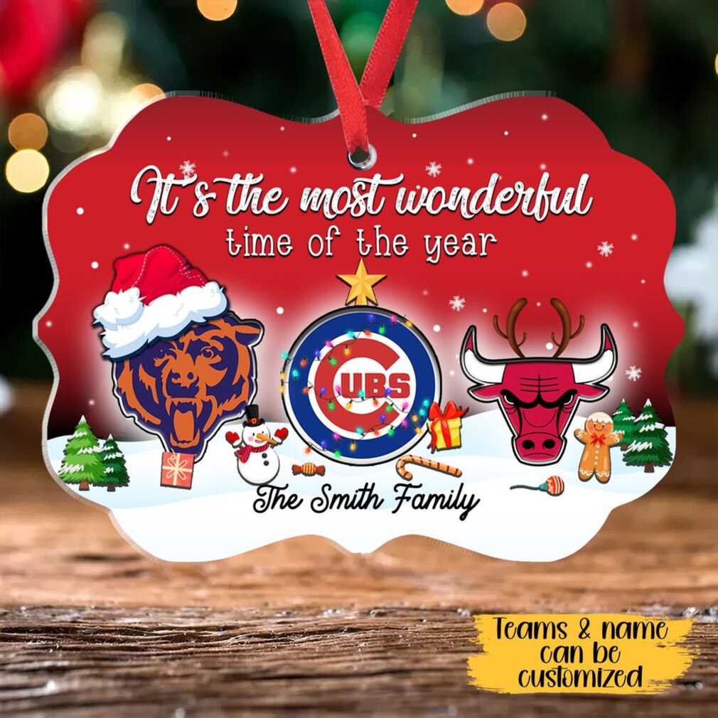 Imagine your Christmas tree celebrating the spirit of Chicago, uniting the passion for all your favorite teams. This isn’t just any ornament; it’s a Customizable “Most Wonderful Time of the Year” Chicago Teams Ornament, a unique way to showcase your Chicago pride. Picture the joy as you and your fellow Chicago sports fans gather around the tree, admiring this special tribute to the Windy City. It’s more than a decoration; it’s a symbol of your love for Chicago, bringing the energy of the city to your holiday season.