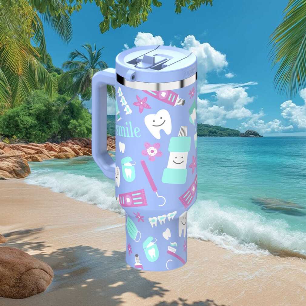 (Dentist & Dental Hygienist Life Pattern Light Blue Insulated Coffee Tumbler)Dentist & Dental Hygienist Life Pattern Light Blue Insulated Coffee Tumbler, Treat yourself or make a great gift for your loved ones