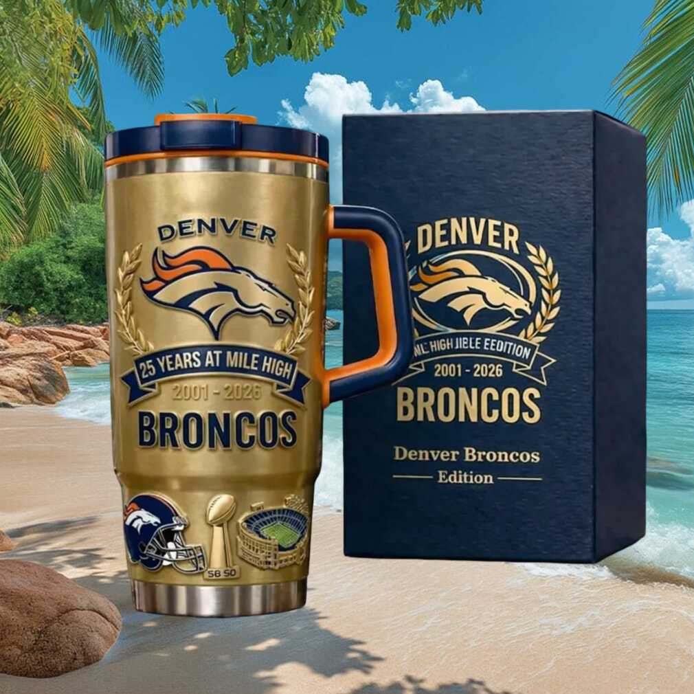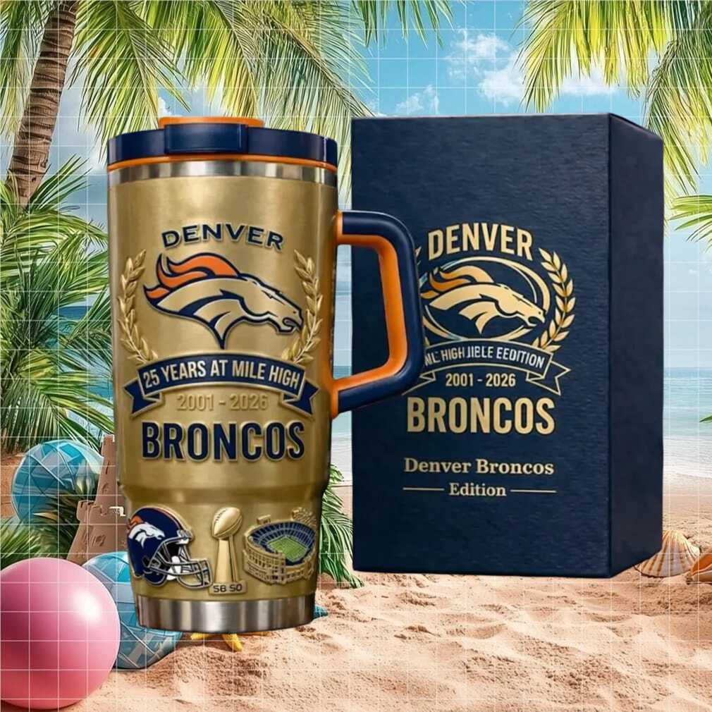(Denver Broncos 25 Years at Mile High (2001 2026) Gold Edition Tumbler)Denver Broncos 25 Years at Mile High (2001 2026) Gold Edition Tumbler, Treat yourself or make a great gift for your loved ones
