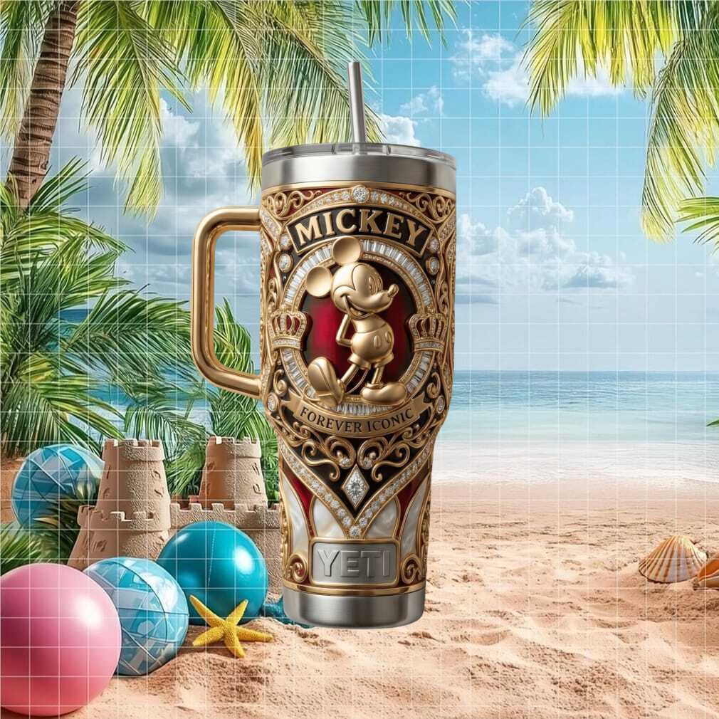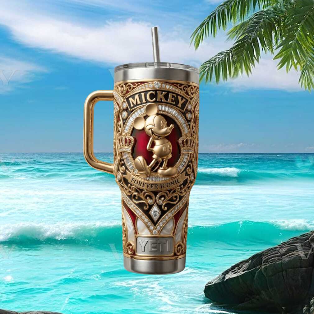 Disney Mickey Mouse “Forever Iconic” Gold Filigree 3D Luxury Tumbler, Treat yourself or make a great gift for your loved ones