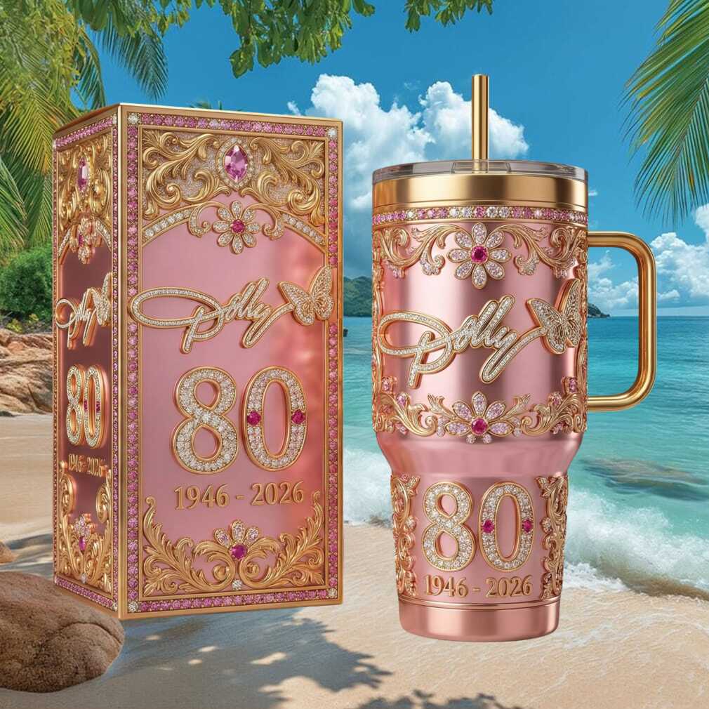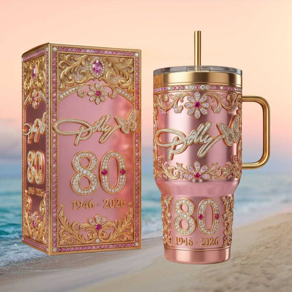 Happy 80th to the Queen of Country! This diamond edition pink and gold 40oz tumbler celebrates Dolly Parton’s incredible milestone birthday spanning 1946–2026. Eight decades of music, love, and rhinestones — captured in the most glamorous tumbler we’ve ever made. Jolene would be jealous.