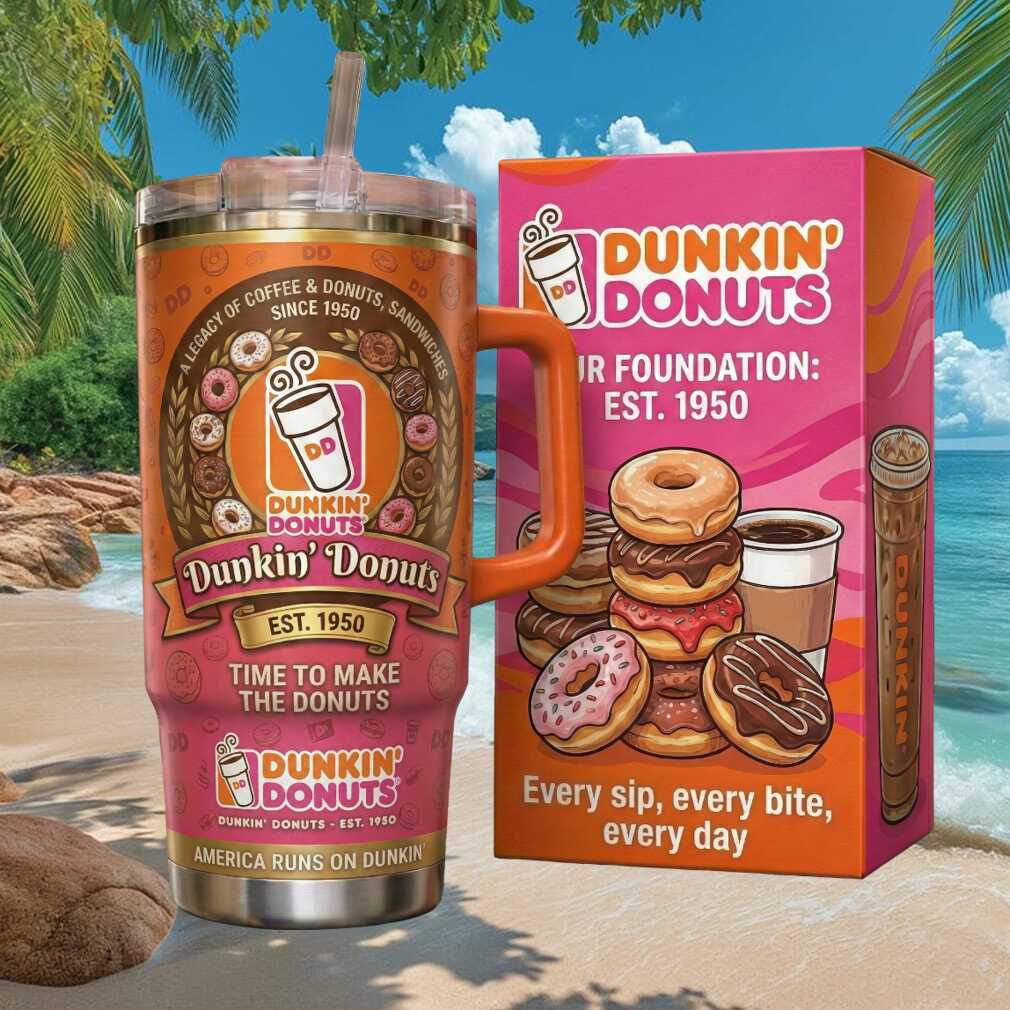 America runs on Dunkin’ — and this retro heritage 40oz tumbler keeps that tradition going in style. Featuring classic Dunkin’ Donuts branding, vintage-inspired graphics from the 1950s, and premium double-wall insulation. A sweet collectible for devoted Dunkin’ fans and coffee lovers.