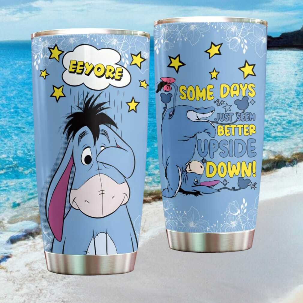 (Eeyore “Upside Down” Blue Floral Tumbler Funny Disney Eeyore Mood Quote Drinkware)Eeyore “Upside Down” Blue Floral Tumbler Funny Disney Eeyore Mood Quote Drinkware, Treat yourself or make a great gift for your loved ones
