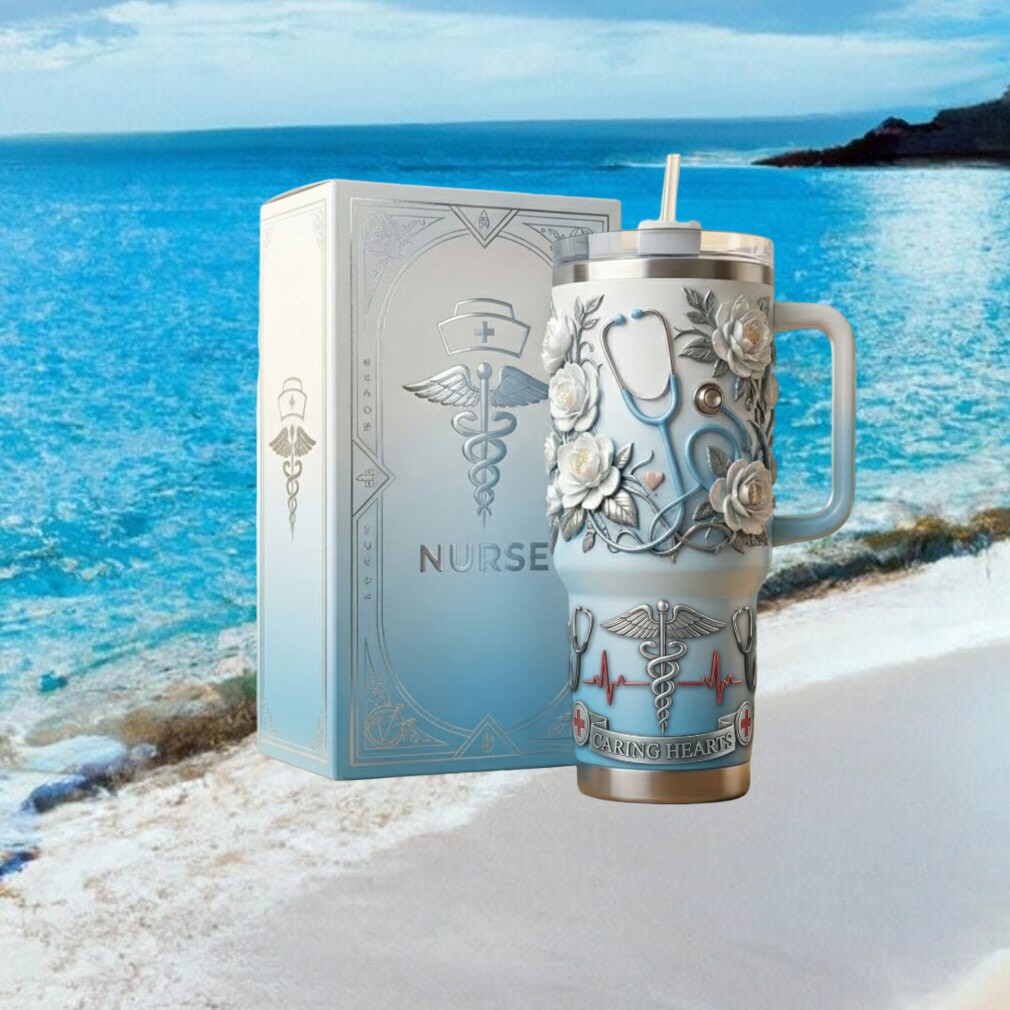 (Elegant Nurse 3D Floral Caduceus Blue Ombre Medical Professional Tumbler)Elegant Nurse 3D Floral Caduceus Blue Ombre Medical Professional Tumbler, Treat yourself or make a great gift for your loved ones