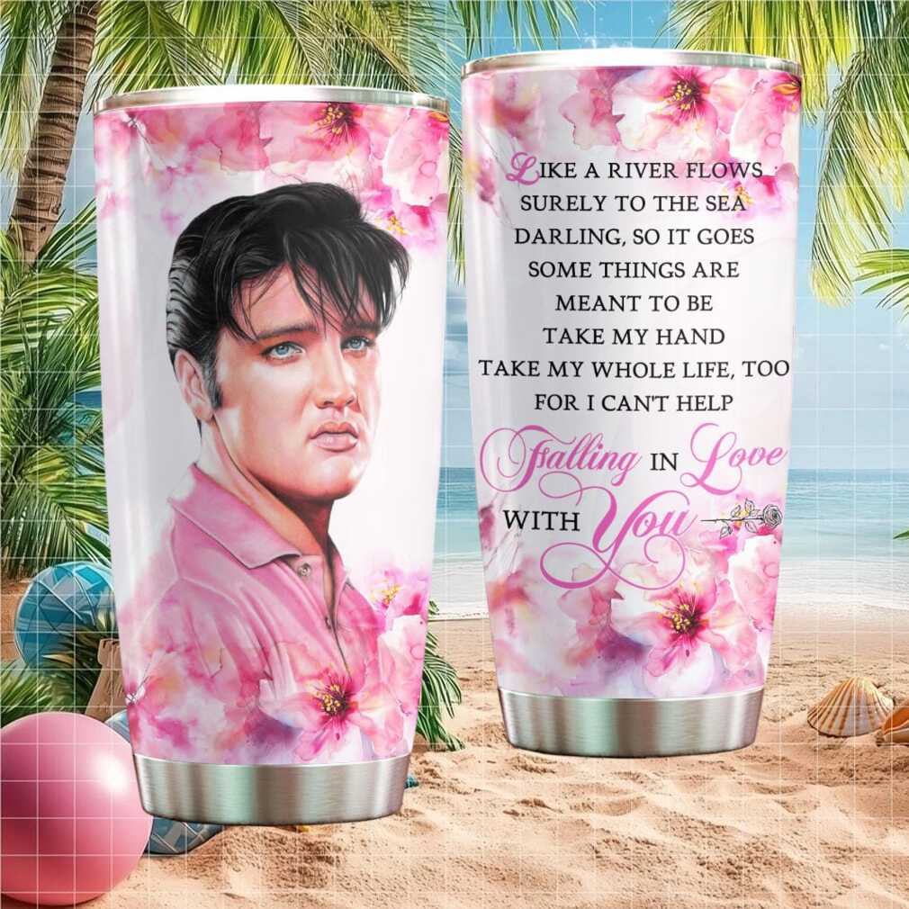 (Elvis Presley Falling In Love With You Pink Cherry Blossom Floral Tumbler)Elvis Presley Falling In Love With You Pink Cherry Blossom Floral Tumbler, Treat yourself or make a great gift for your loved ones