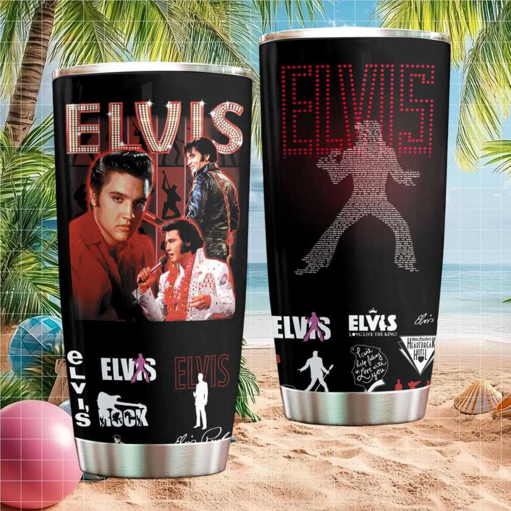 (Elvis Presley “Long Live The King” Collage Silhouette Black Stainless Steel Tumbler)Elvis Presley “Long Live The King” Collage Silhouette Black Stainless Steel Tumbler, Treat yourself or make a great gift for your loved ones