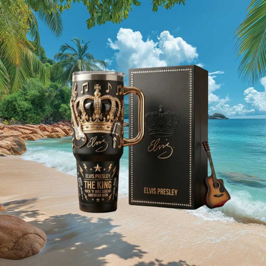 Elvis Presley “The King” American Icon 3D Embossed Crown & Music Note Tumbler, Treat yourself or make a great gift for your loved ones