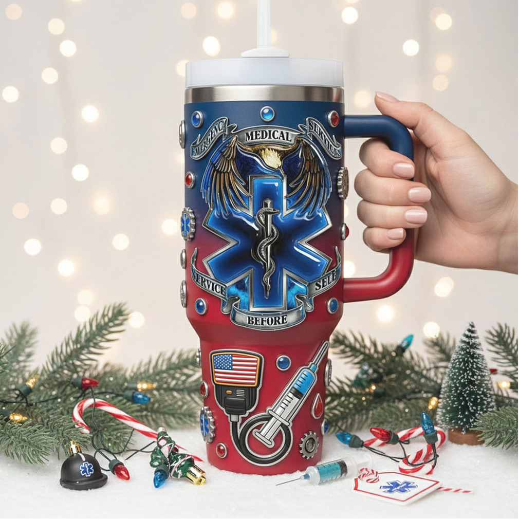 Who Rocks This Best with EMS Tumbler with Handle Medical Service Before Self Paramedic Gift