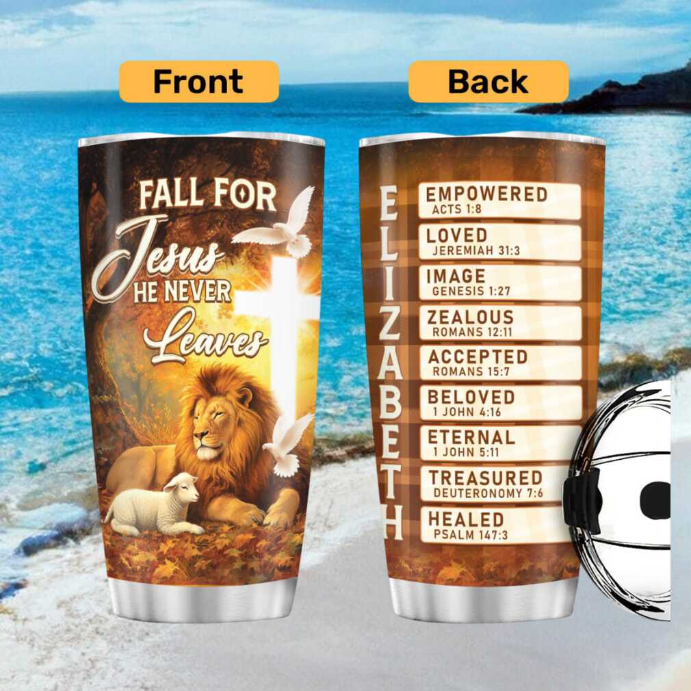 (Fall for Jesus He Never Leaves Lion and Lamb Personalized Acrostic Tumbler)Fall for Jesus He Never Leaves Lion and Lamb Personalized Acrostic Tumbler, Treat yourself or make a great gift for your loved ones