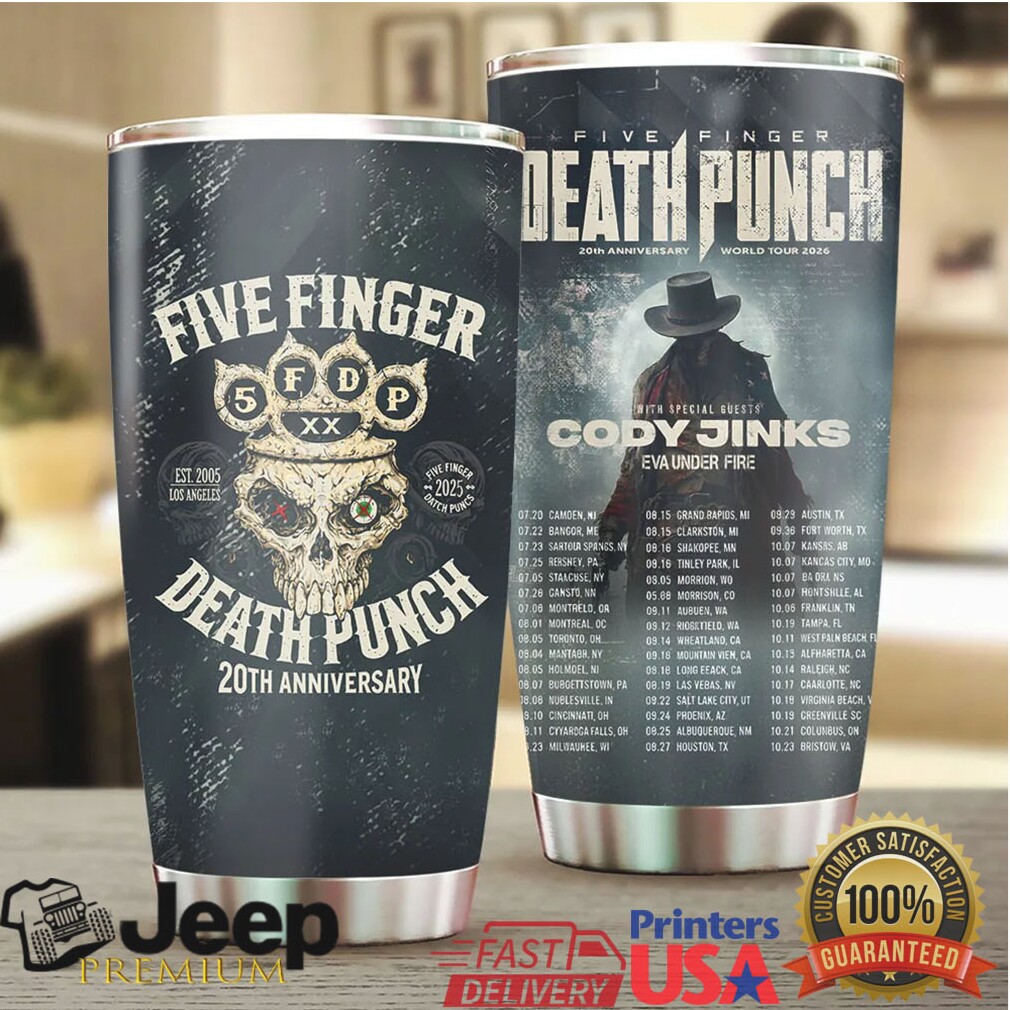 (Five Finger Death Punch 20th Anniversary World Tour 2025 Concert Tumbler)Built for the Journey, Styled for You Whether it’s your morning caffeine kick or a refreshing ice-cold drink after a long day, the Teejeep Premium Steel Tumbler is engineered to keep your beverages at the perfect temperature. Sleek, rugged, and ready for anything.