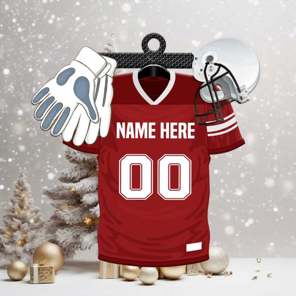 Celebrate their passion for the game with this Football Uniform Personalized Christmas Ornament! This unique ornament is a perfect gift for football players, coaches, and fans alike. More than just a decoration, it’s a personalized keepsake to remember the season by. Great for Christmas, end of season or birthday gifts!