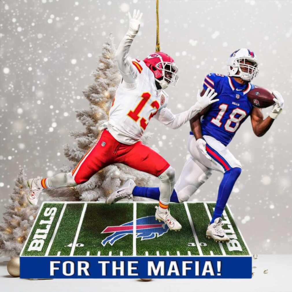 This For the Mafia! Buffalo Bills & KC Chiefs Football Ornament brings the spirit of the game to your Christmas tree. Perfect for fans of either the Bills or the Chiefs, this ornament adds a touch of team spirit to your holiday decor. It is not only eye catching but made of durable materials. More than just an ornament, it’s a celebration of football and the Mafia!