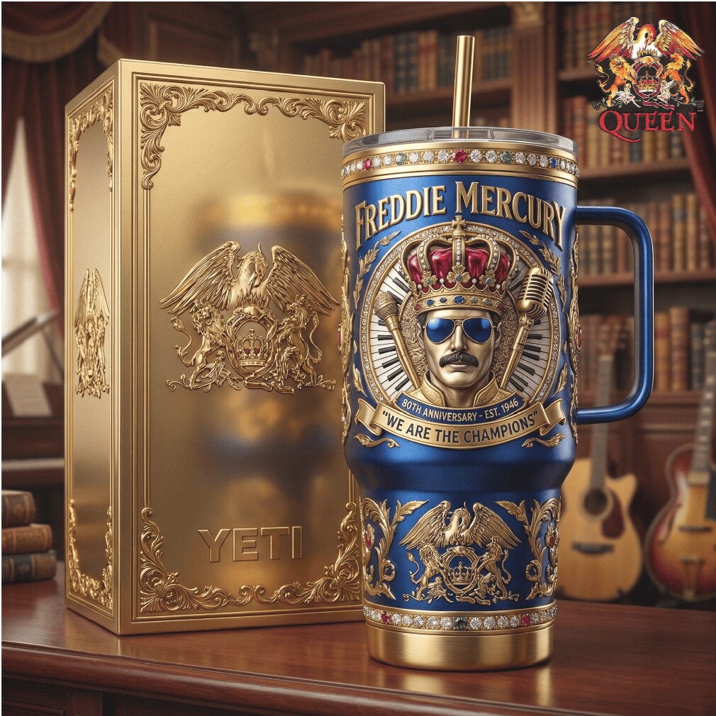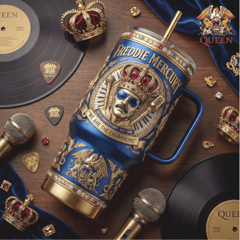 (Freddie Mercury Queen Tribute 40oz Tumbler Royal Gold & Blue “We Are The Champions” Tumbler)Freddie Mercury Queen Tribute 40oz Tumbler Royal Gold & Blue “We Are The Champions” Tumbler, Treat yourself or make a great gift for your loved ones
