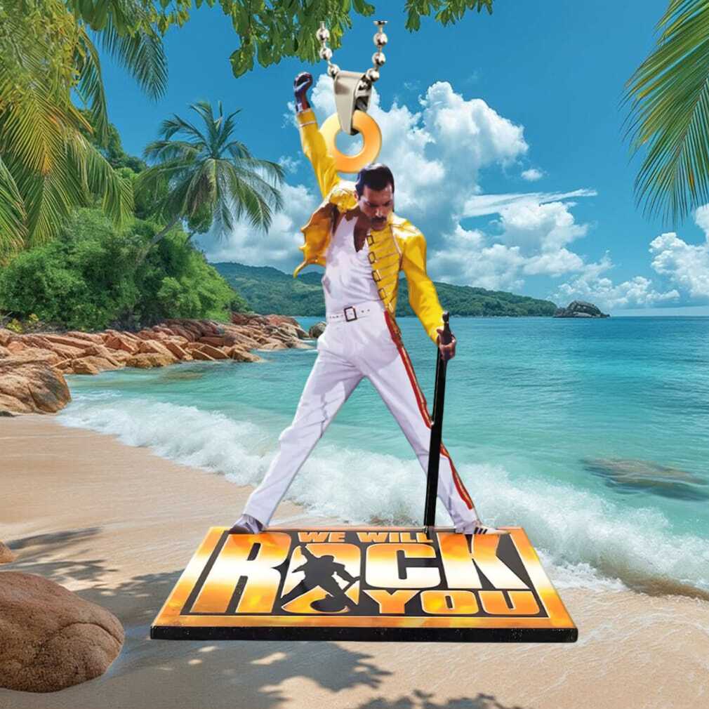 🥤 About Freddie Mercury Queen “We Will Rock You” Iconic Pose Car Rearview Pendant Ornament