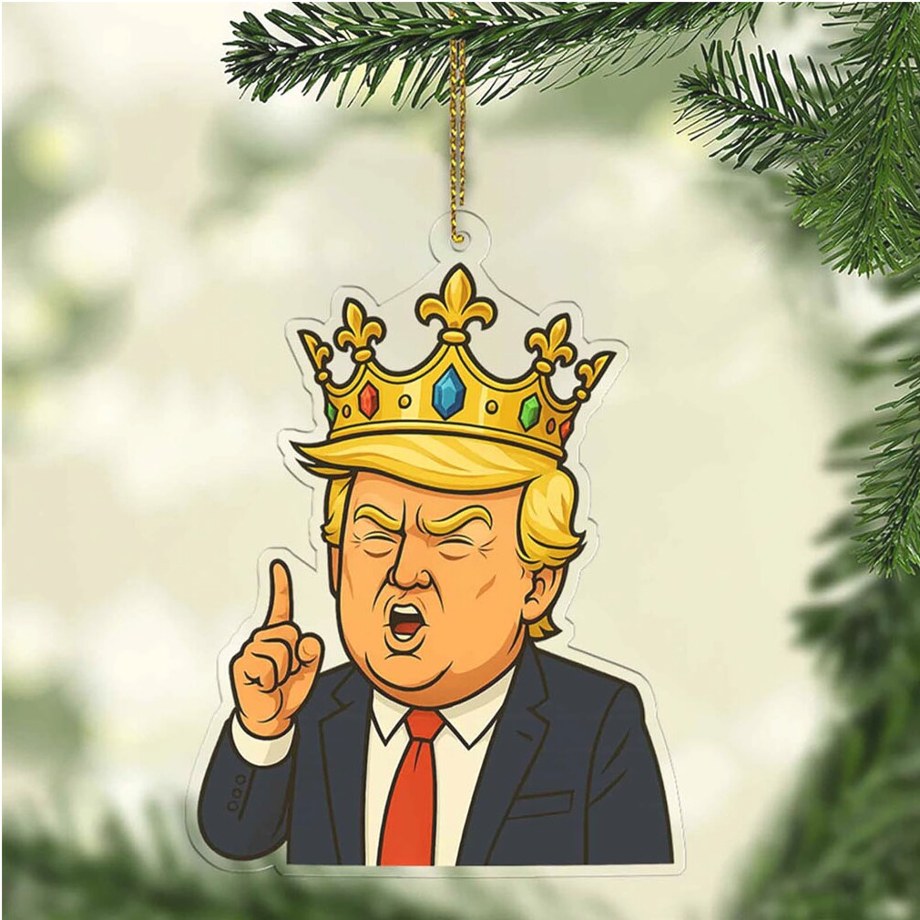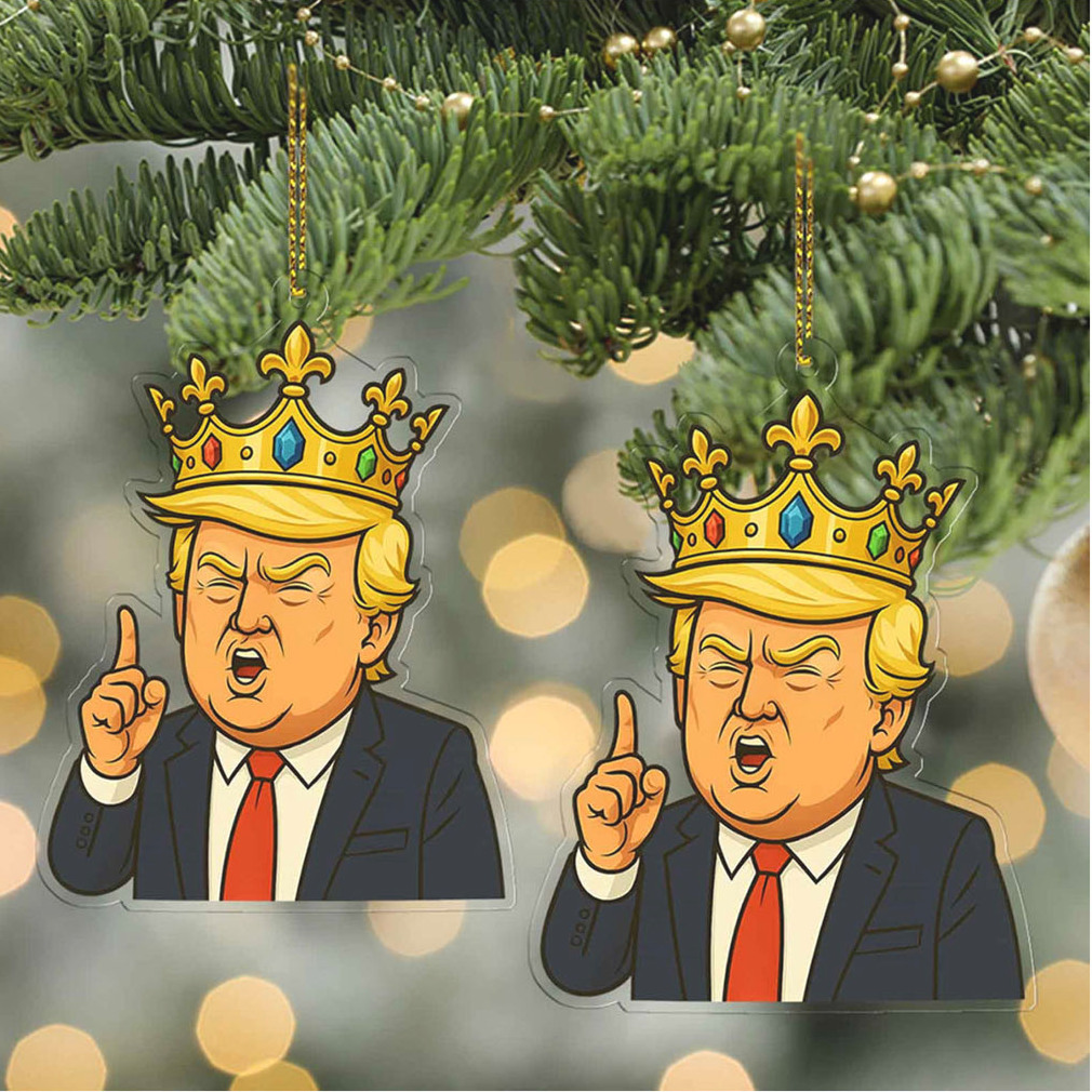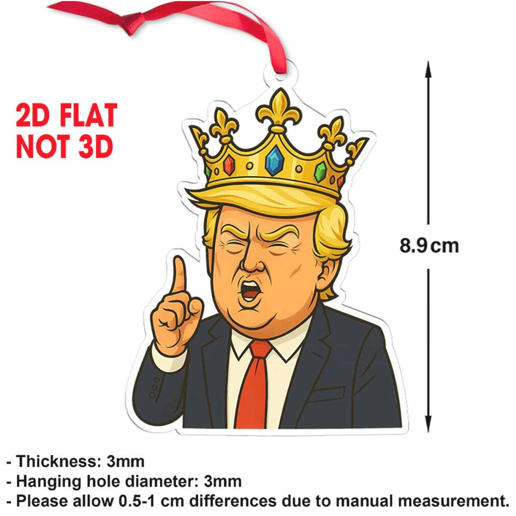 This Funny Cartoon Donald Trump Acrylic Ornament is best for Donald Trump supporters, political humor enthusiasts, or anyone who enjoys injecting a bit of lighthearted fun into their holiday season. It’s an ideal gag gift for a holiday party, a unique stocking stuffer, or a fun addition to your own festive display. Picture it hanging proudly, drawing smiles and comments from all your guests. This ornament’s distinct charm makes it an unforgettable piece of Trump With Crown Christmas Ornament, perfect for bringing a lighter mood to the holiday season.