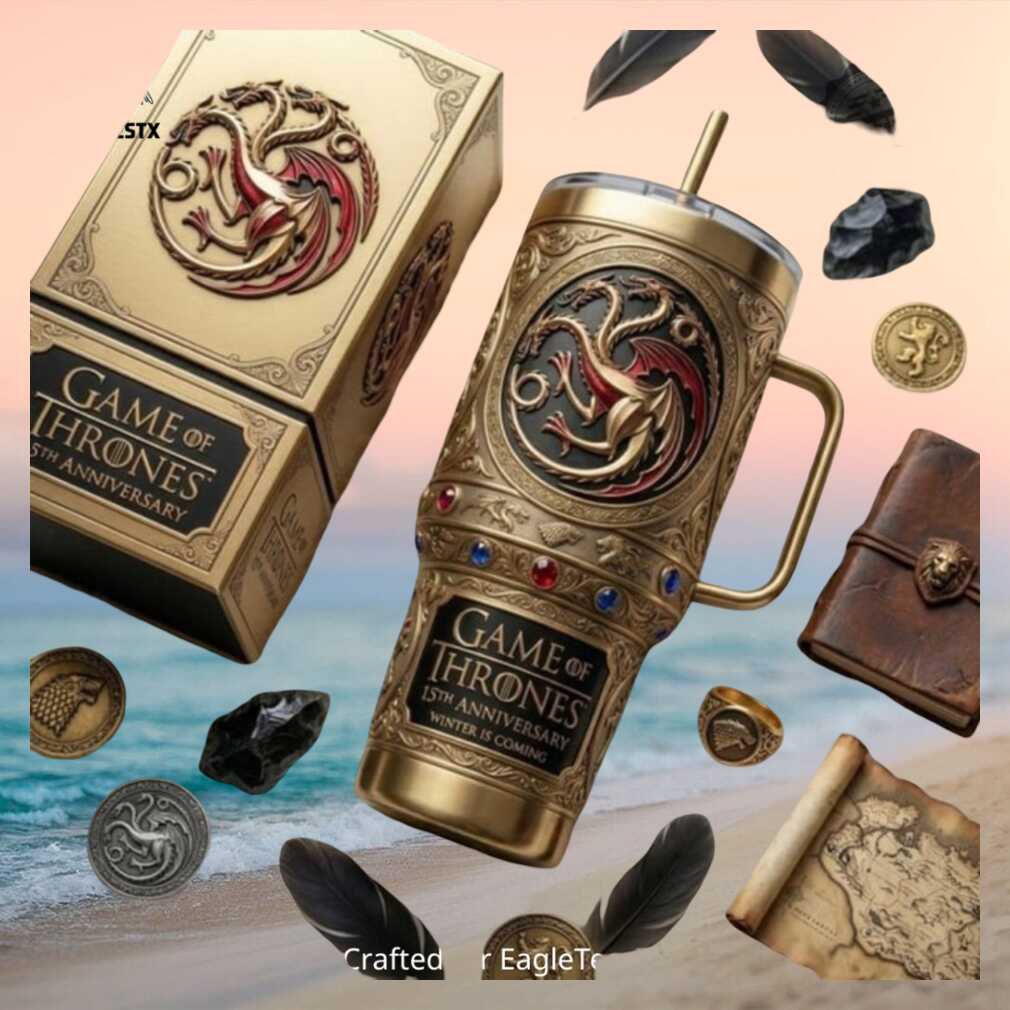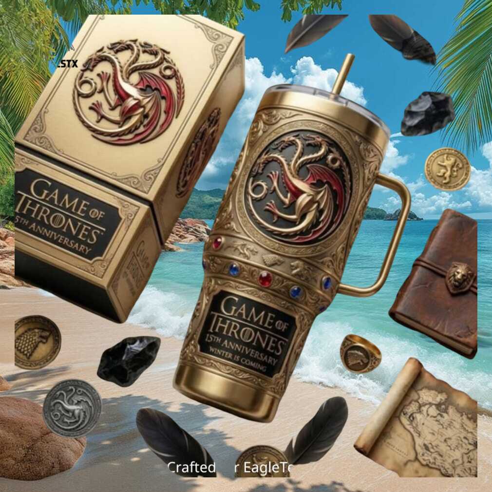 15 years of Game of Thrones (2011–2026) honored in this Targaryen Sigil gold edition 40oz tumbler. Fire and blood in premium stainless steel — a must-have for every fan of Westeros.