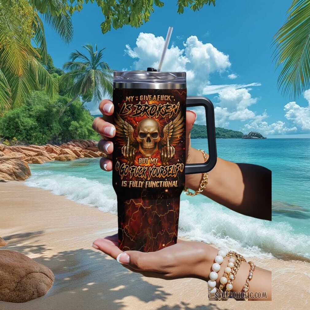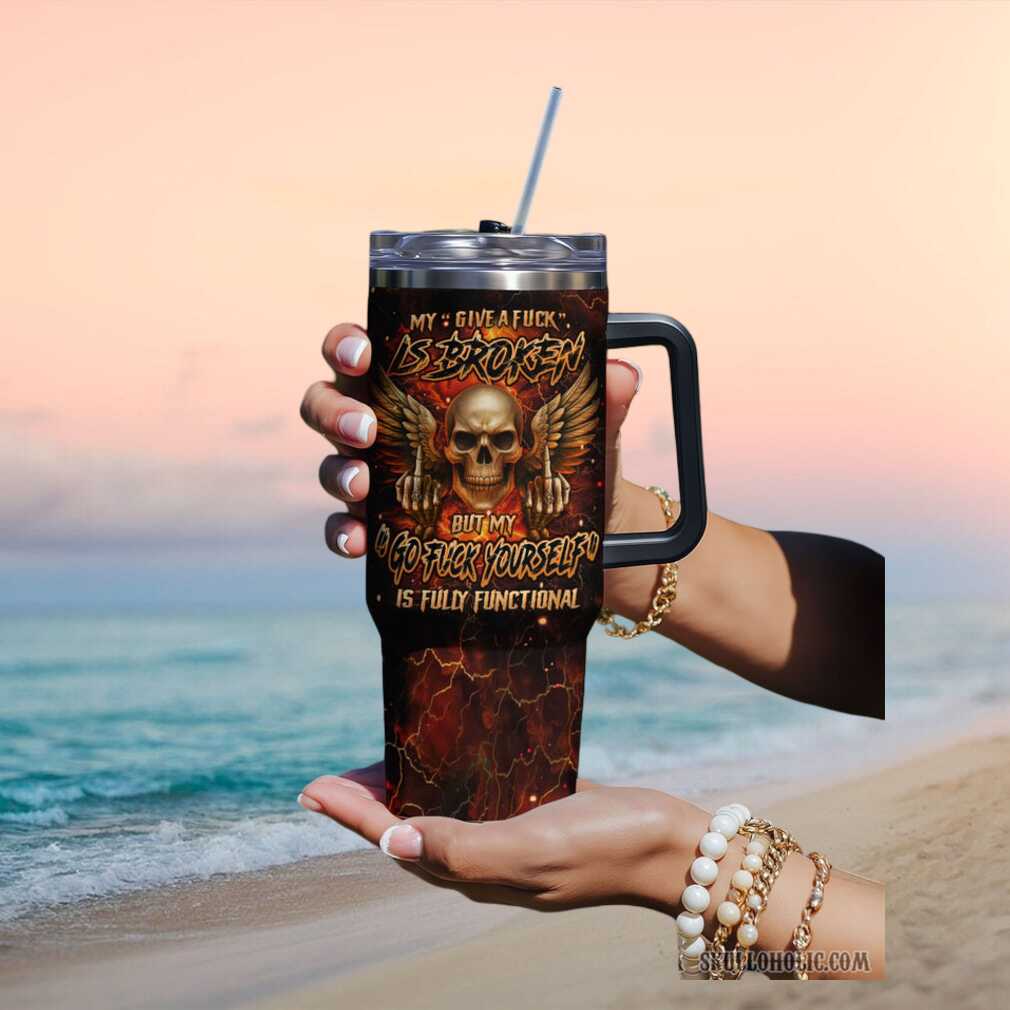 🥤 About “Give A Fuck Is Broken” Badass Winged Skull 40oz Tumbler