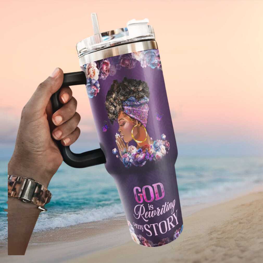 (God Is Rewriting My Story African American Woman Prayer Floral Tumbler)God Is Rewriting My Story African American Woman Prayer Floral Tumbler, Treat yourself or make a great gift for your loved ones