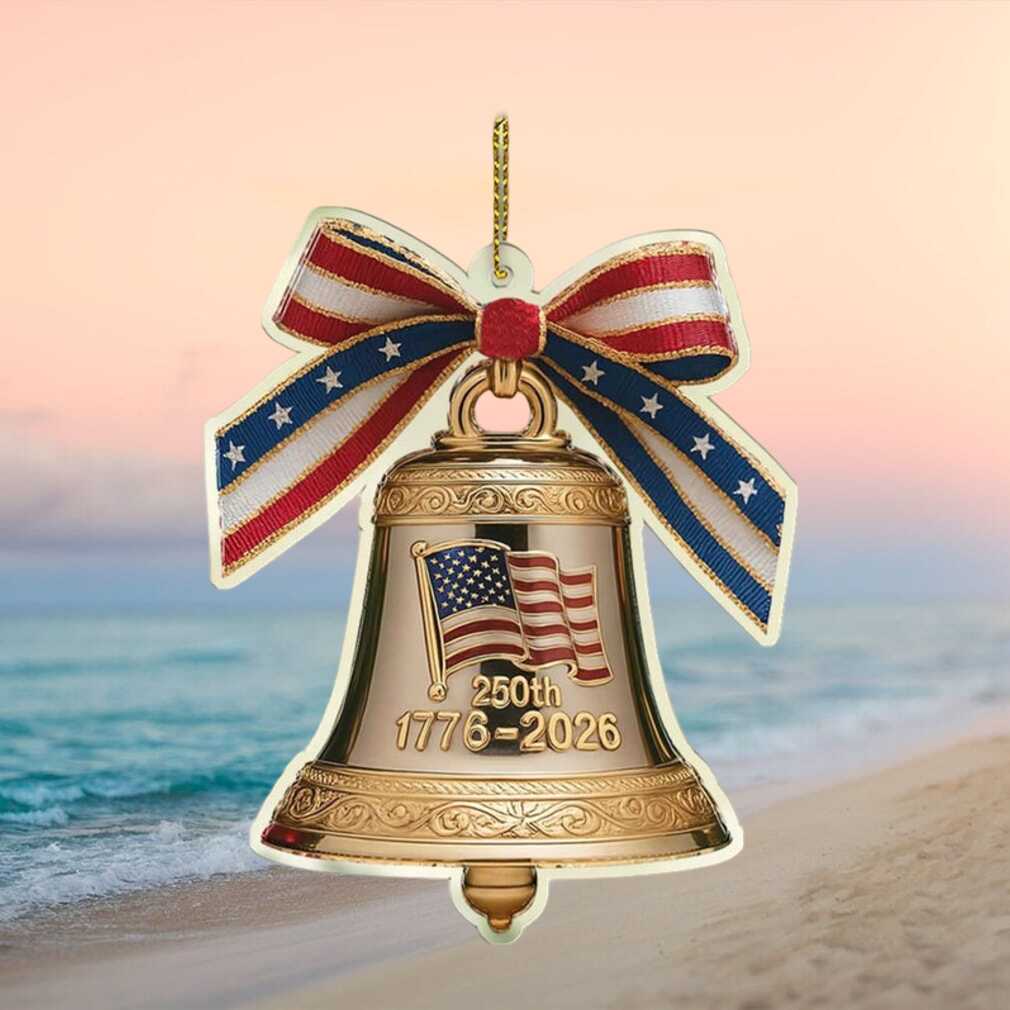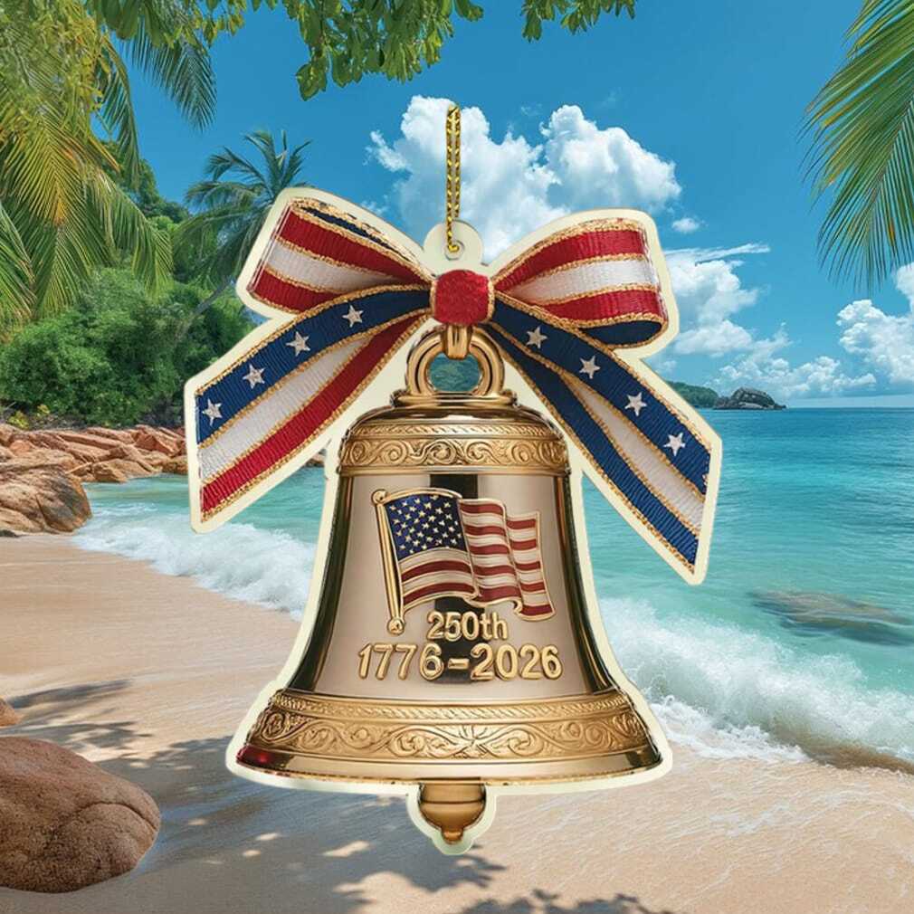🥤 About Gold 250th Anniversary Bell Ornament with Patriotic Ribbon 1776 2026 USA
