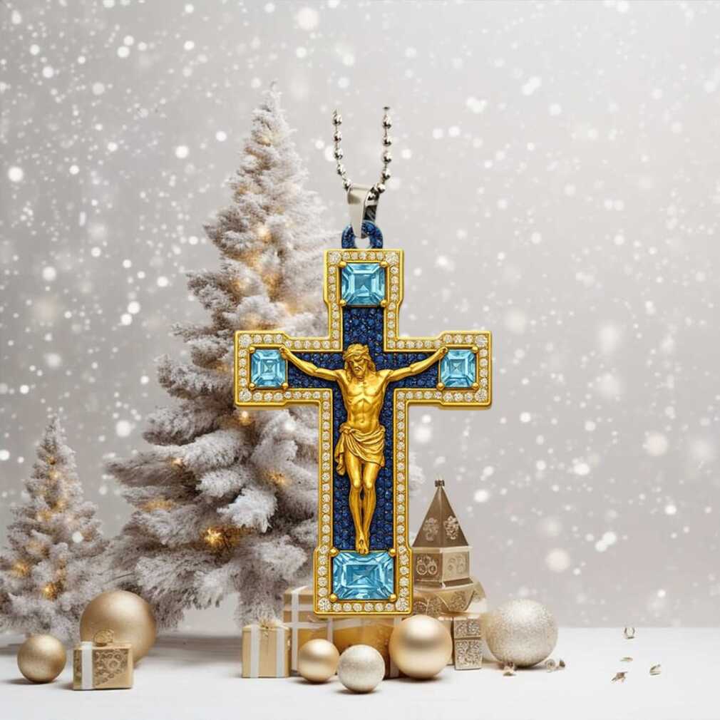 Add a touch of faith and elegance to your car with this Gold & Blue Jeweled Crucifix Car Hanging Ornament. More than just a decoration, it’s a reflection of your beliefs and a source of comfort during your travels. Perfect for Christians and Catholics who want to express their faith, this ornament is a beautiful reminder of what matters most.