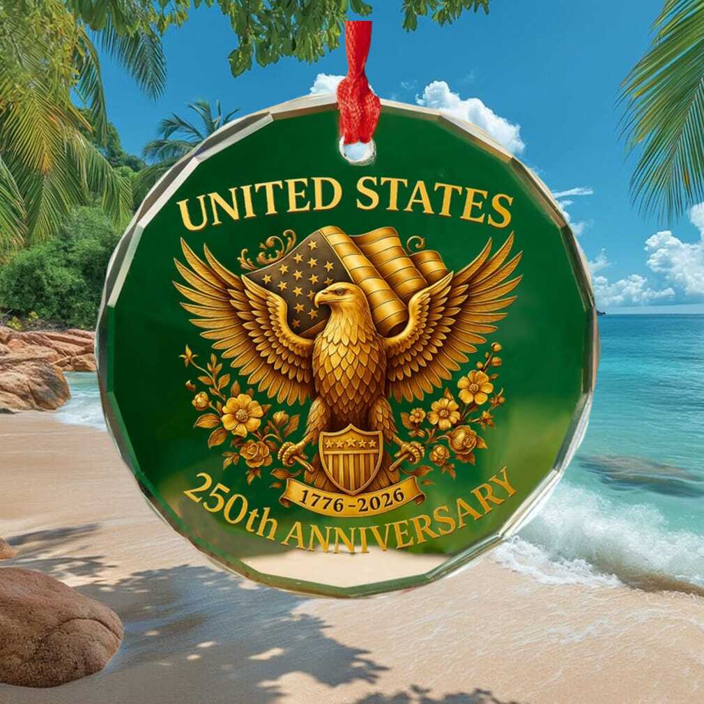 Luxurious and refined, this beveled glass ornament features a golden eagle design celebrating the United States’ 250th anniversary. The beveled glass edges catch and refract light beautifully, creating a dazzling display — a premium keepsake for discerning collectors.