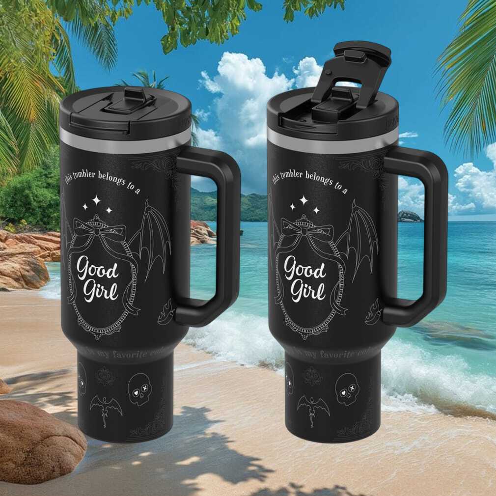 (Goth Aesthetic “Good Girl” Bat Wing Matte Black Insulated Tumbler with Handle)Goth Aesthetic “Good Girl” Bat Wing Matte Black Insulated Tumbler with Handle, Treat yourself or make a great gift for your loved ones