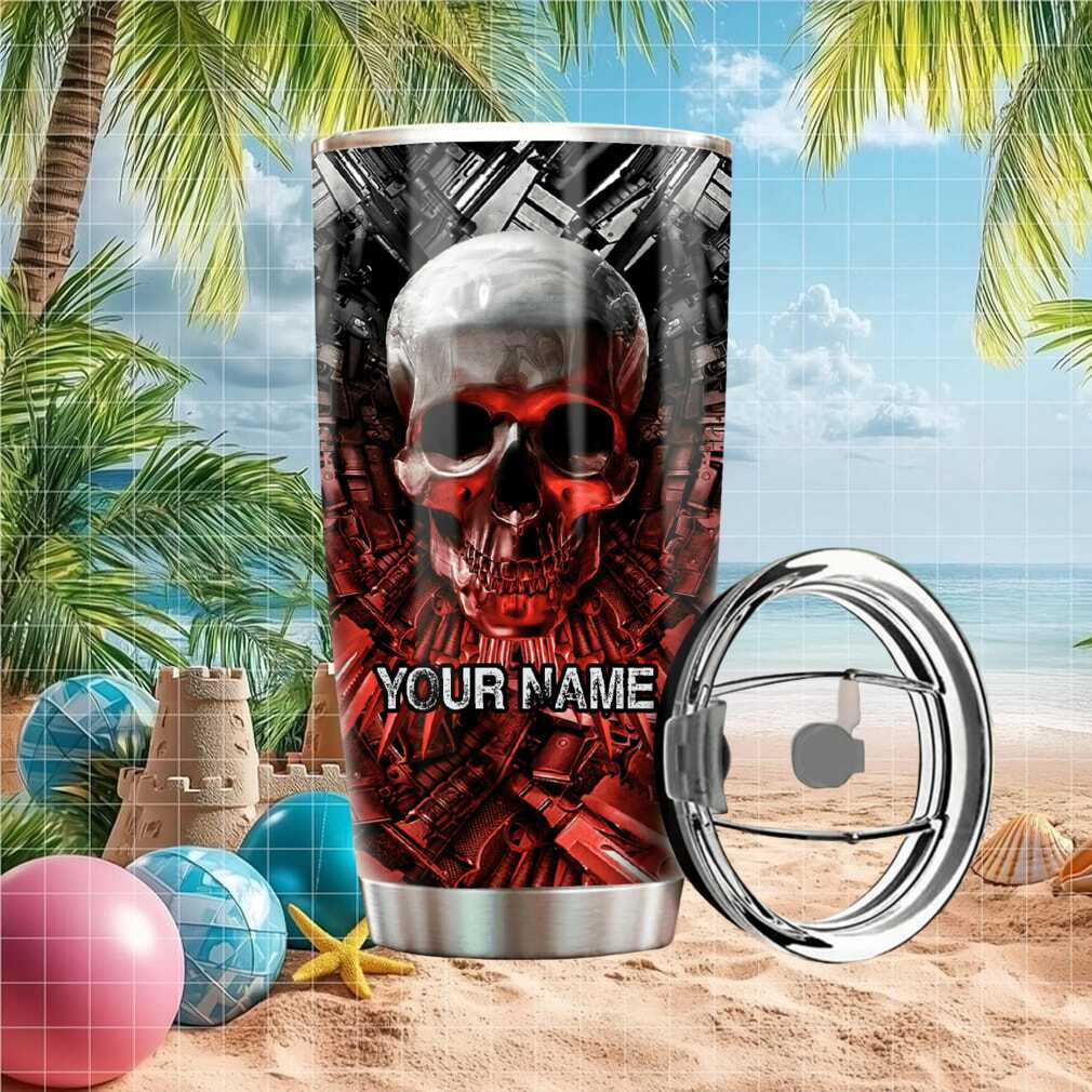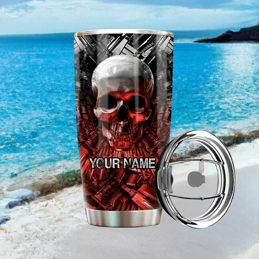 (Gothic Flaming Skull and Weapons Custom Name Stainless Steel Tumbler)Gothic Flaming Skull and Weapons Custom Name Stainless Steel Tumbler, Treat yourself or make a great gift for your loved ones