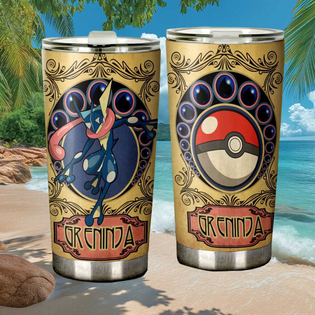 (Greninja Art Nouveau Vintage Style Tumbler Retro Anime Illustration Stainless Steel Tumbler)