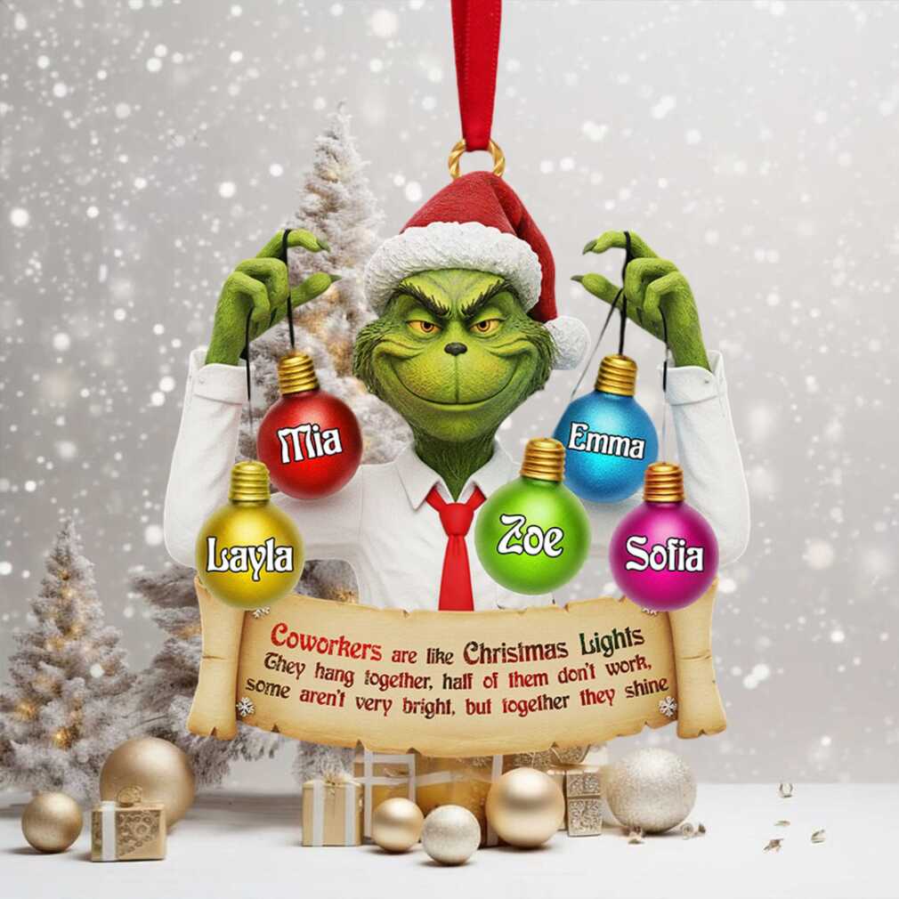 This ornament is perfect for coworkers with a good sense of humor and those who appreciate a little Grinchy mischief. It resonates with: