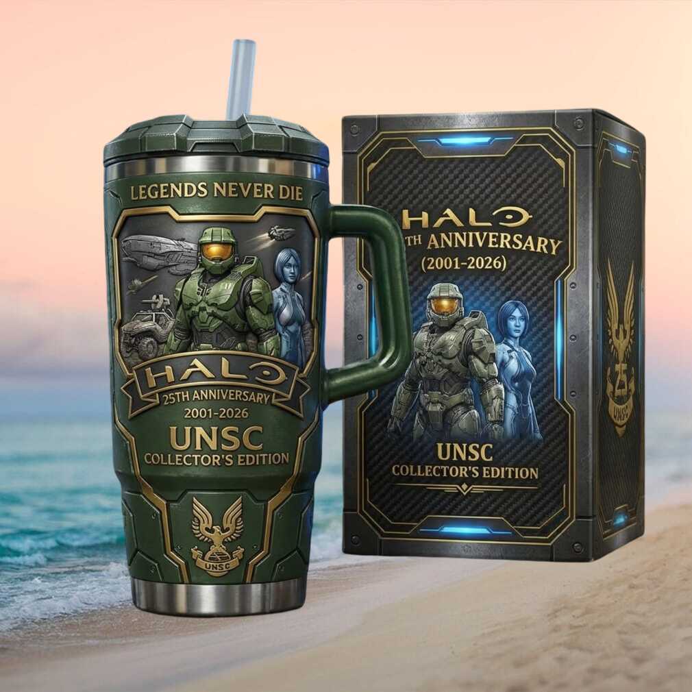 Level up your drinkware collection with this officially-inspired Halo 25Th Anniversary Master Chief Unsc Collectors Edition tumbler. A stunning piece for collectors and superfans, crafted in durable stainless steel with high-definition artwork.