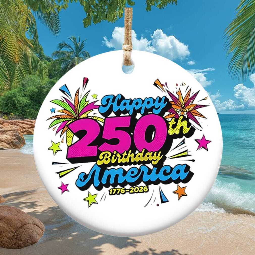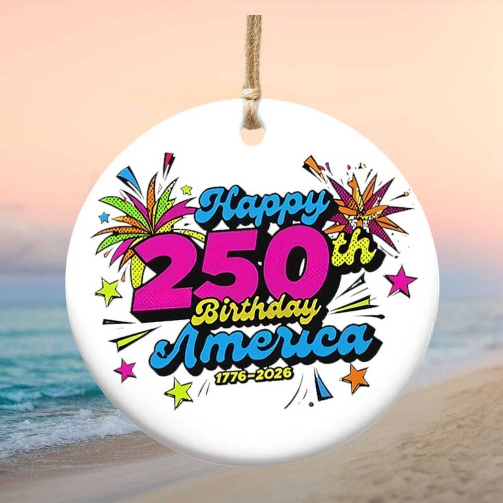 Celebrate America’s 250th birthday in bold, vibrant style with this pop art-inspired ornament. Featuring bright, graphic colors and a festive ‘Happy 250th Birthday America’ message alongside 1776–2026 dates, this playful piece brings a modern artistic energy to the patriotic celebration.