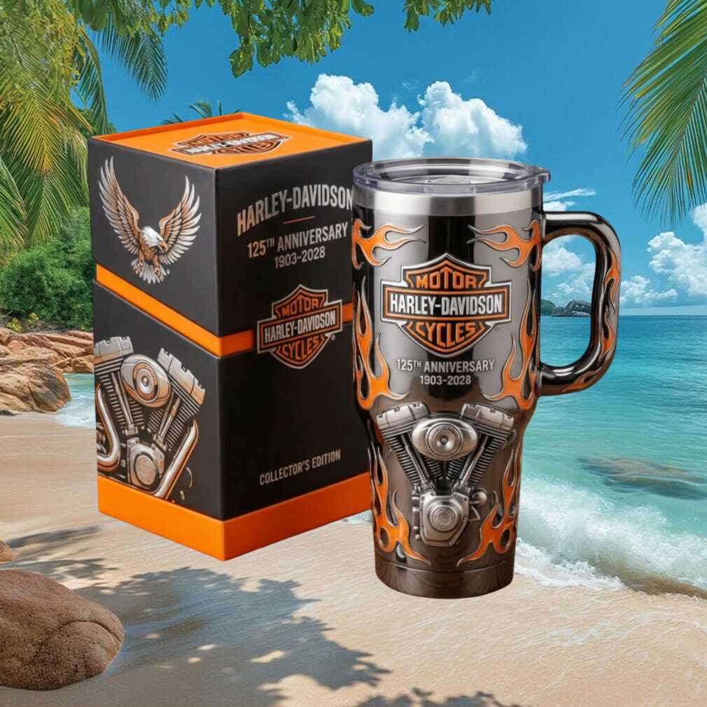 Celebrate your passion with this premium stainless steel insulated tumbler featuring a stunning Harley Davidson 125th Anniversary Collectors Edition design. Crafted for true fans and collectors, this Lifestyle/Brands edition tumbler keeps drinks cold for 24 hours and hot for 12 hours. Double-wall vacuum insulation and a durable powder-coated finish make it perfect for everyday use or as a one-of-a-kind gift. Limited edition collectible — a must-have for any dedicated fan.