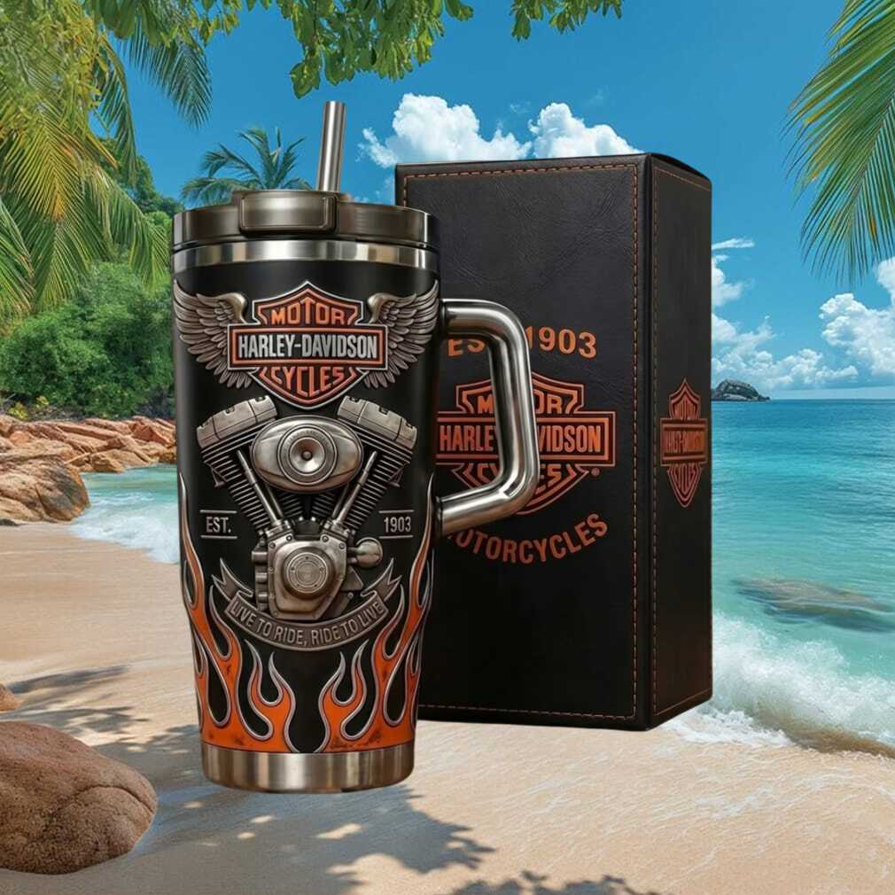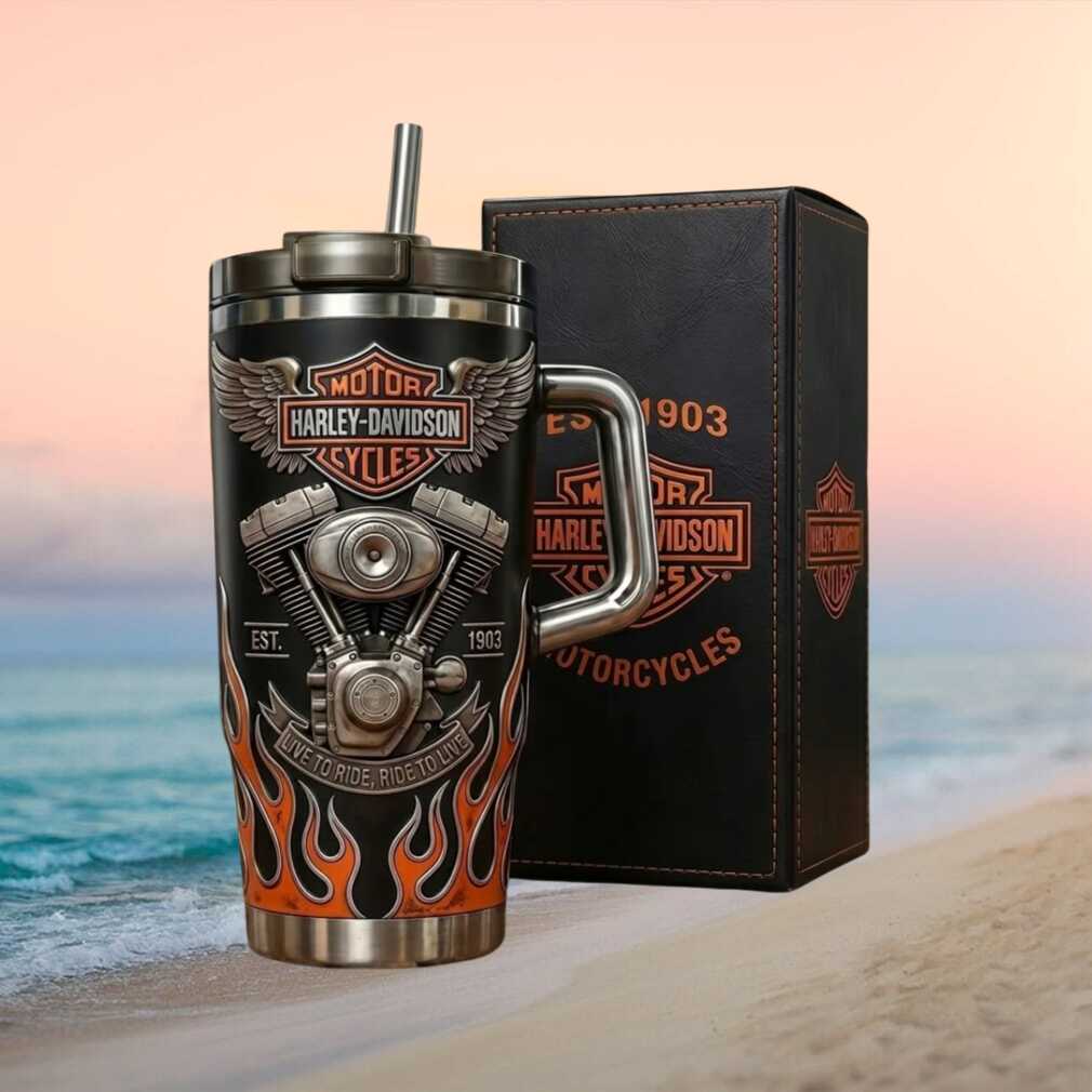🥤 About Harley Davidson “Live to Ride” V Twin Engine Embossed Tumbler with Gift Box