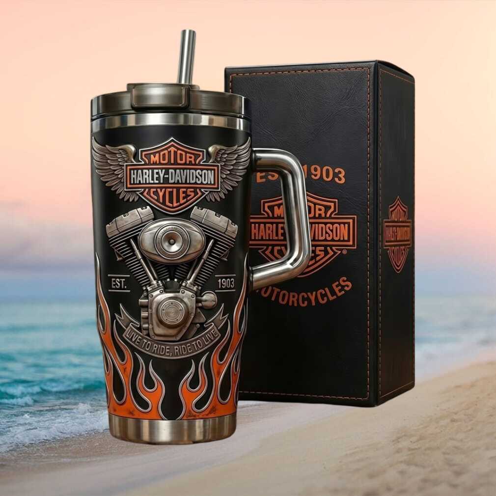 (Harley Davidson Vintage Engine 40oz Tumbler with Handle and Gift Box)Harley Davidson Vintage Engine 40oz Tumbler with Handle and Gift Box, Treat yourself or make a great gift for your loved ones