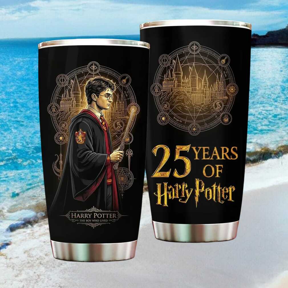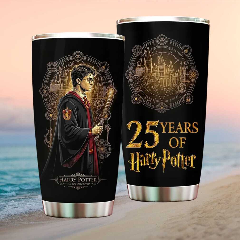 (Harry Potter The Boy Who Lived 25 Years Anniversary Hogwarts Crest Gold Tumbler)Harry Potter The Boy Who Lived 25 Years Anniversary Hogwarts Crest Gold Tumbler, Treat yourself or make a great gift for your loved ones