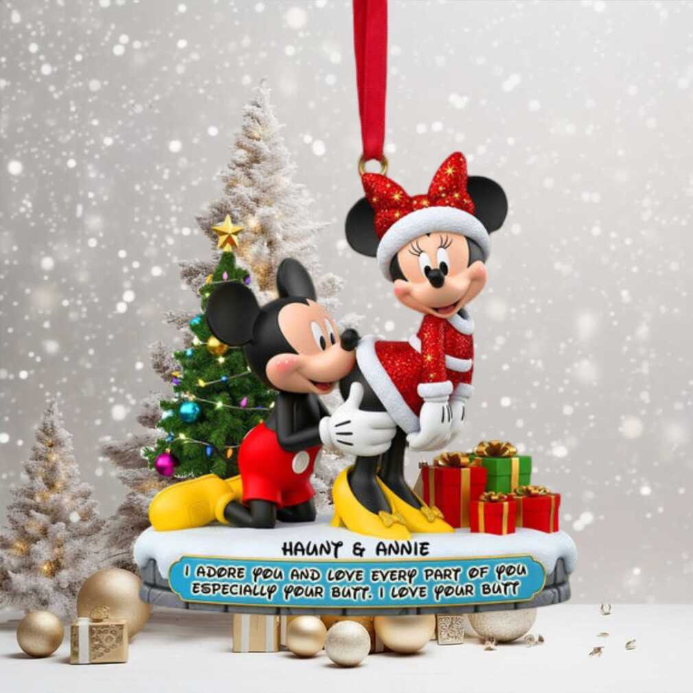 Looking for a Christmas ornament that’s as unique and fun as your relationship? This isn’t your grandma’s traditional Christmas decoration! Imagine this playful Mickey & Minnie ornament hanging on your tree, sparking laughter and showcasing your special bond. For couples with a great sense of humor, this personalized ornament is the perfect way to celebrate the holidays with a touch of cheeky romance. Get ready for some smiles (and maybe a few blushes)!