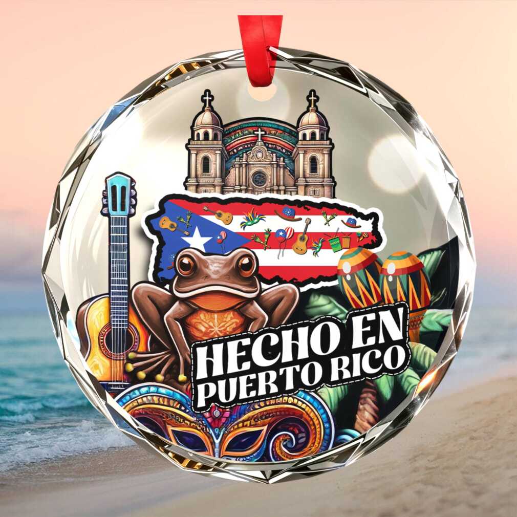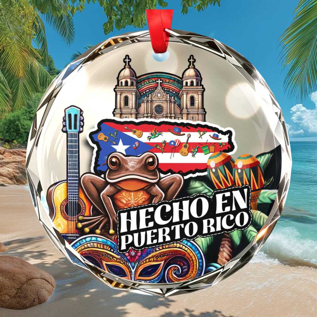 Celebrate la isla del encanto with this beautiful acrylic ornament featuring the brown Coqui — Puerto Rico’s beloved national symbol — alongside other heritage icons and ‘Hecho en Puerto Rico.’ A perfect gift for anyone proud of their Boricua roots.