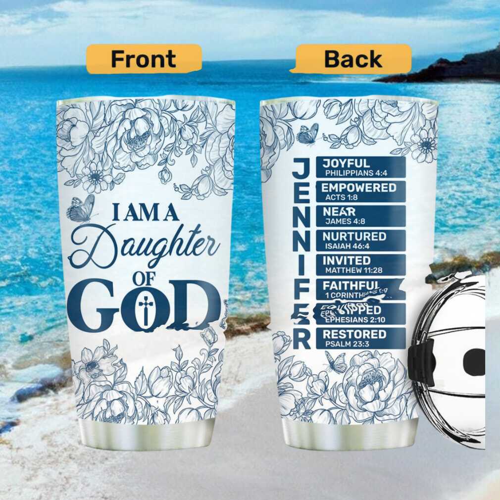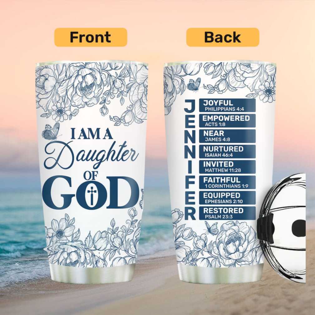 (I Am A Daughter Of God Blue Floral Personalized Tumbler Custom Name Bible Verse)I Am A Daughter Of God Blue Floral Personalized Tumbler Custom Name Bible Verse, Treat yourself or make a great gift for your loved ones