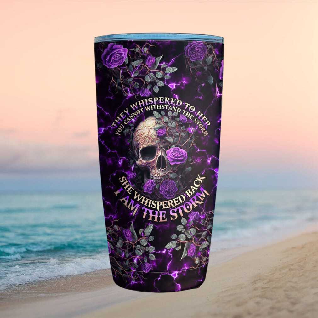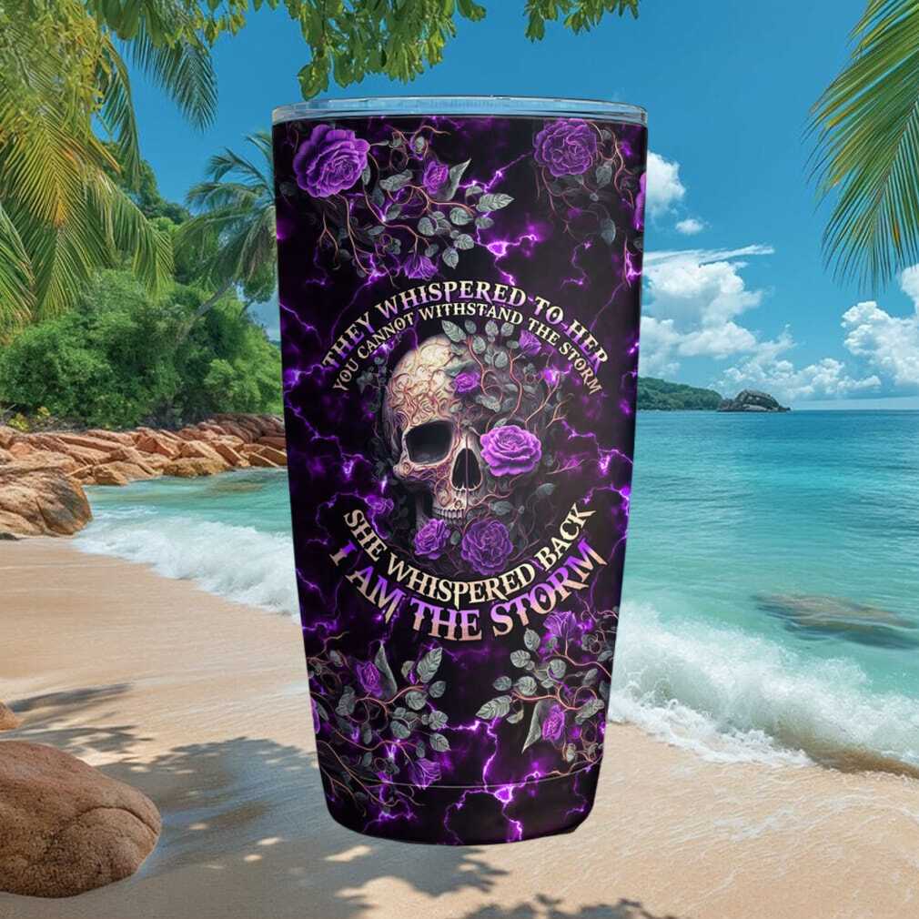 🥤 About I Am The Storm Purple Rose Floral Sugar Skull Inspirational Tumbler