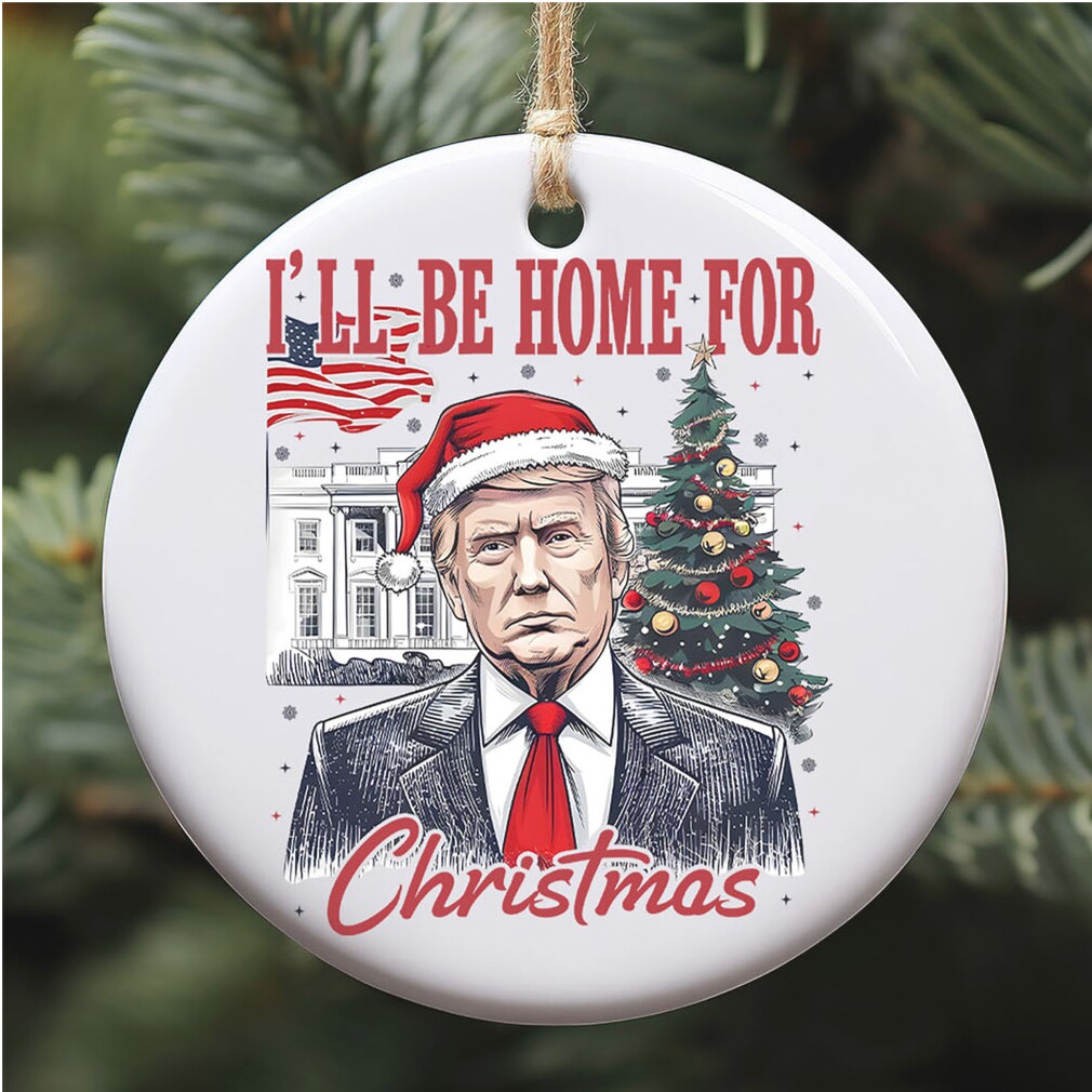 I’ll Be Home For Christmas, Trump Merry Christmas, Trump 47th President Ceramic Ornament, Perfect for Car & Christmas Tree Decor