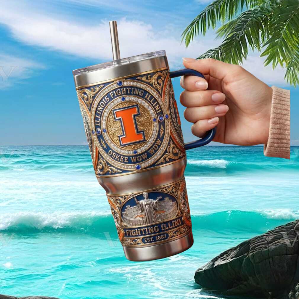 (Illinois Fighting Illini Oskee Wow Wow 3D Varsity Collegiate Tumbler Design)Illinois Fighting Illini Oskee Wow Wow 3D Varsity Collegiate Tumbler Design, Treat yourself or make a great gift for your loved ones