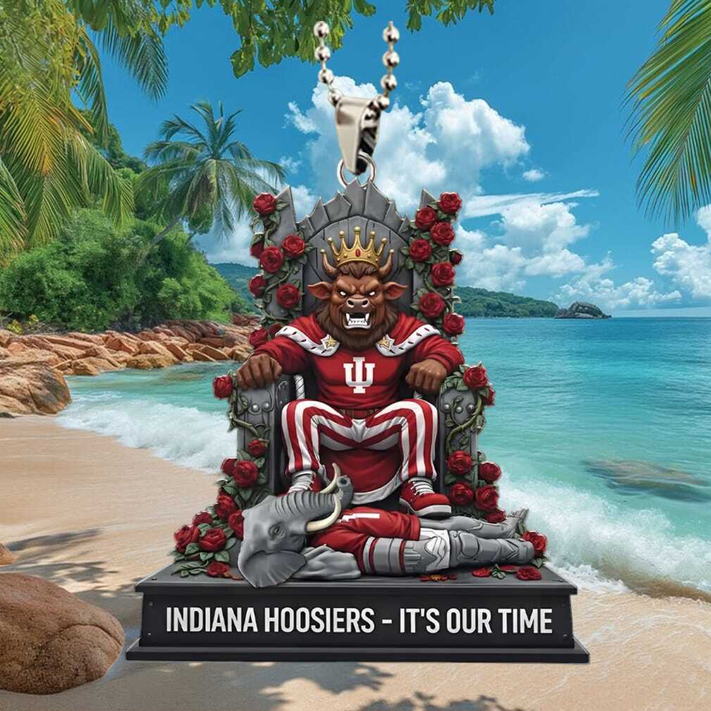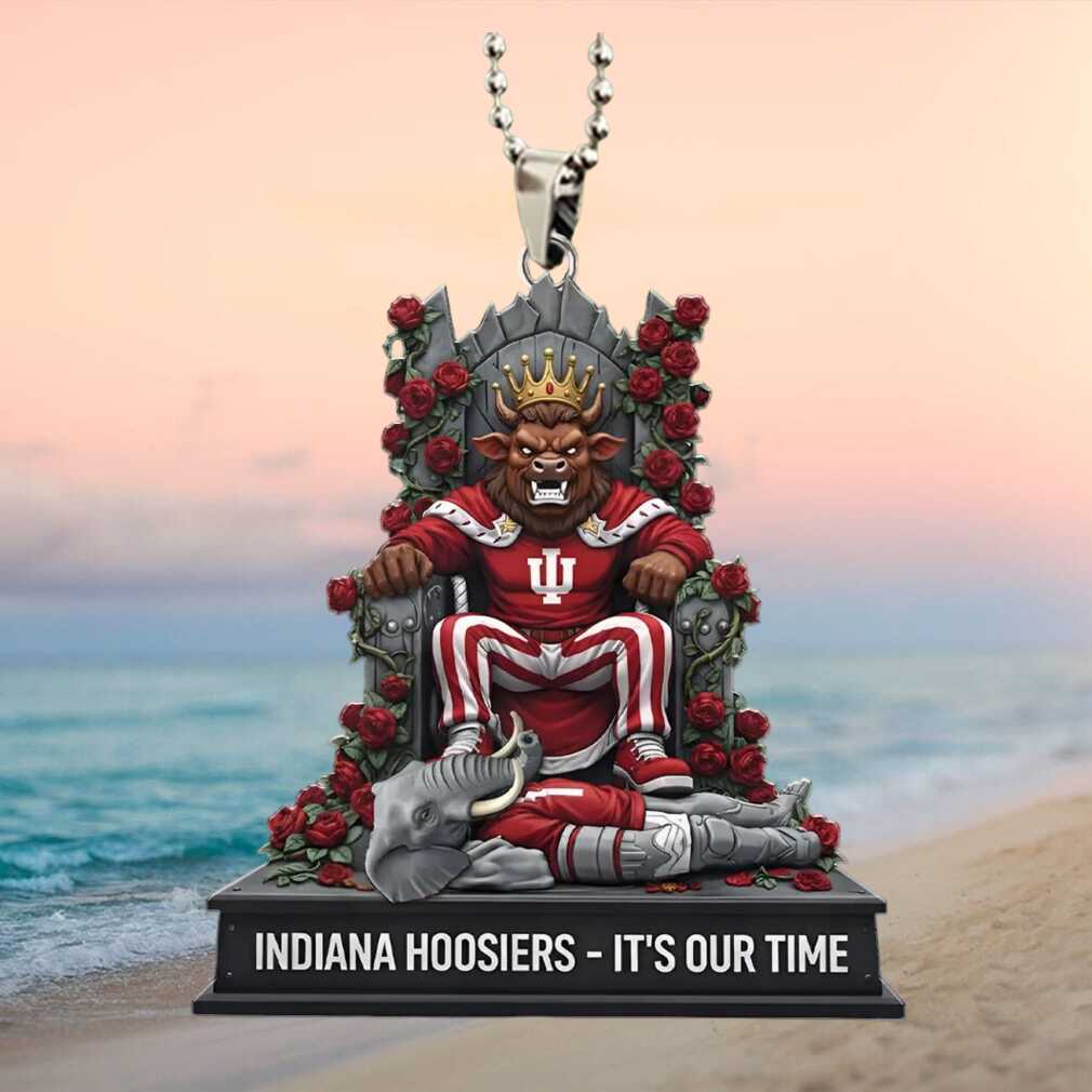 Declare ‘It’s Our Time’ with this bold Indiana Hoosiers victory throne car ornament. A rallying call for Hoosier fans celebrating their NCAA mascot’s triumphant rise in college basketball.