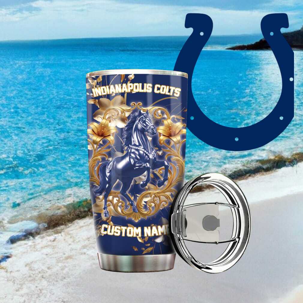 (Indianapolis Colts Nfl Gold Floral Horse Custom Tumbler)Indianapolis Colts Nfl Gold Floral Horse Custom Tumbler, Treat yourself or make a great gift for your loved ones