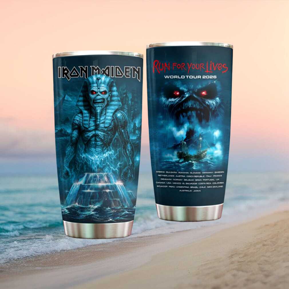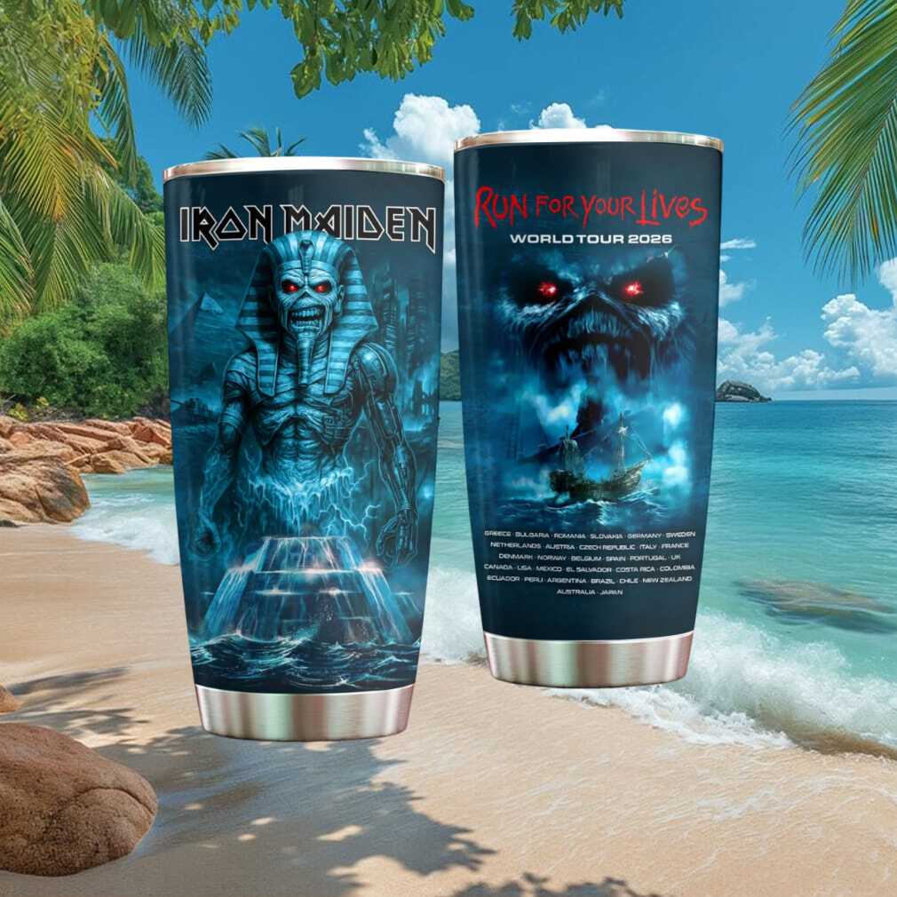 (Iron Maiden Powerslave Mummy Run For Your Lives 2026 World Tour Tumbler)
