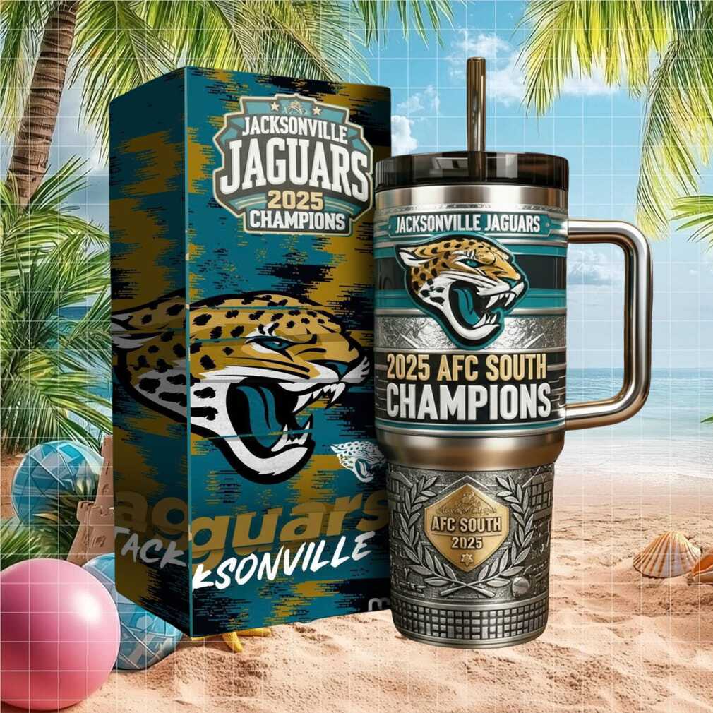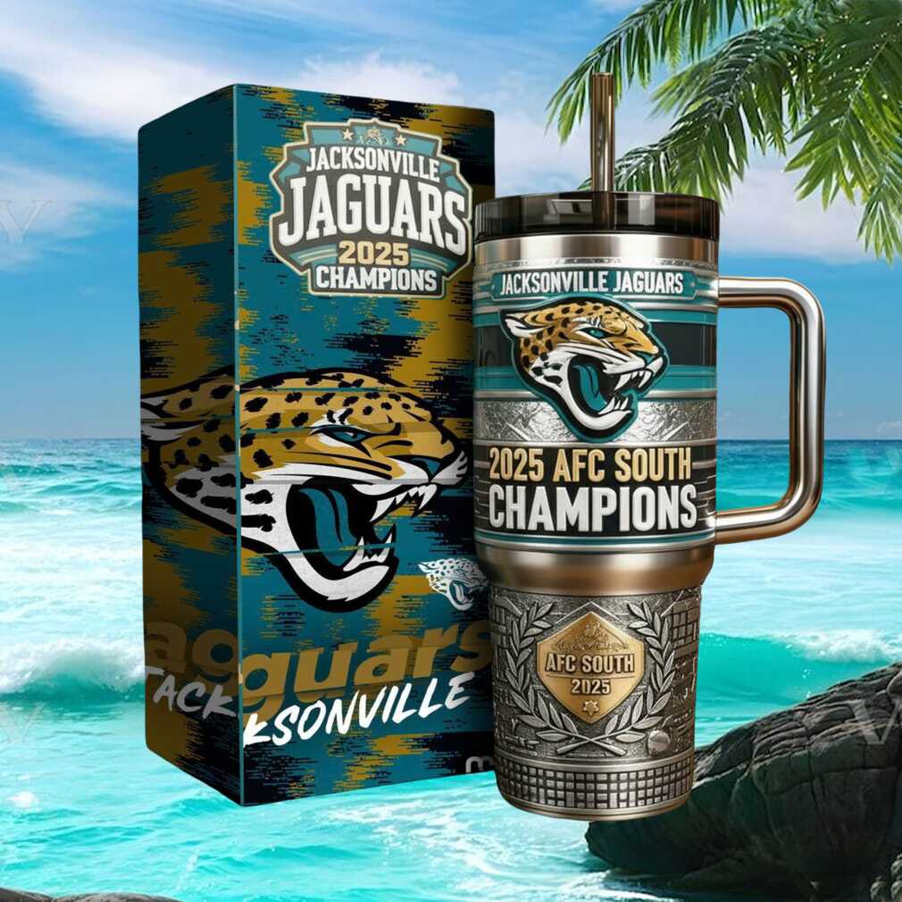 (Jacksonville Jaguars 2025 AFC South Champions Commemorative Silver 40oz Tumbler)Jacksonville Jaguars 2025 AFC South Champions Commemorative Silver 40oz Tumbler, Treat yourself or make a great gift for your loved ones