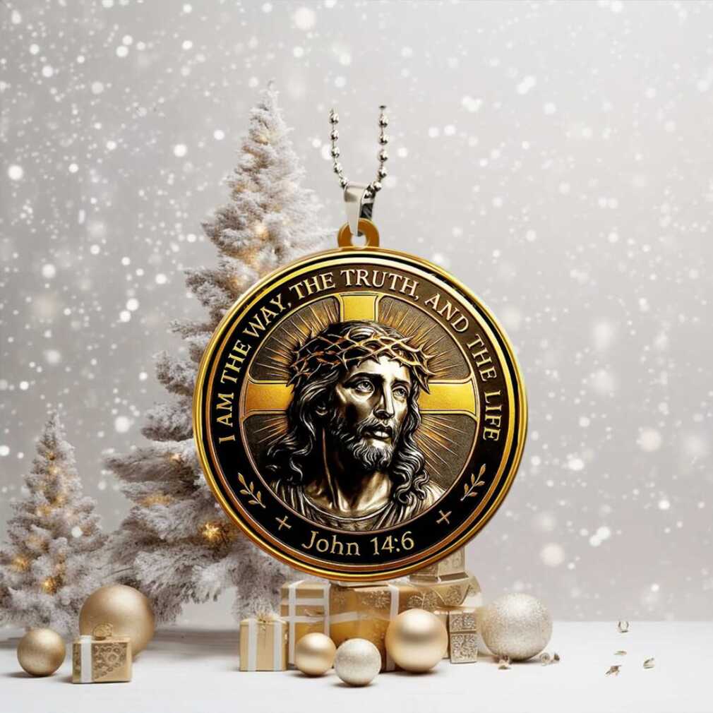 Express your faith on the road with this ‘Jesus The Way, The Truth, and The Life’ Car Ornament. This inspirational ornament serves as a constant reminder of your beliefs and values. Perfect for Christians and anyone seeking spiritual guidance during their travels.